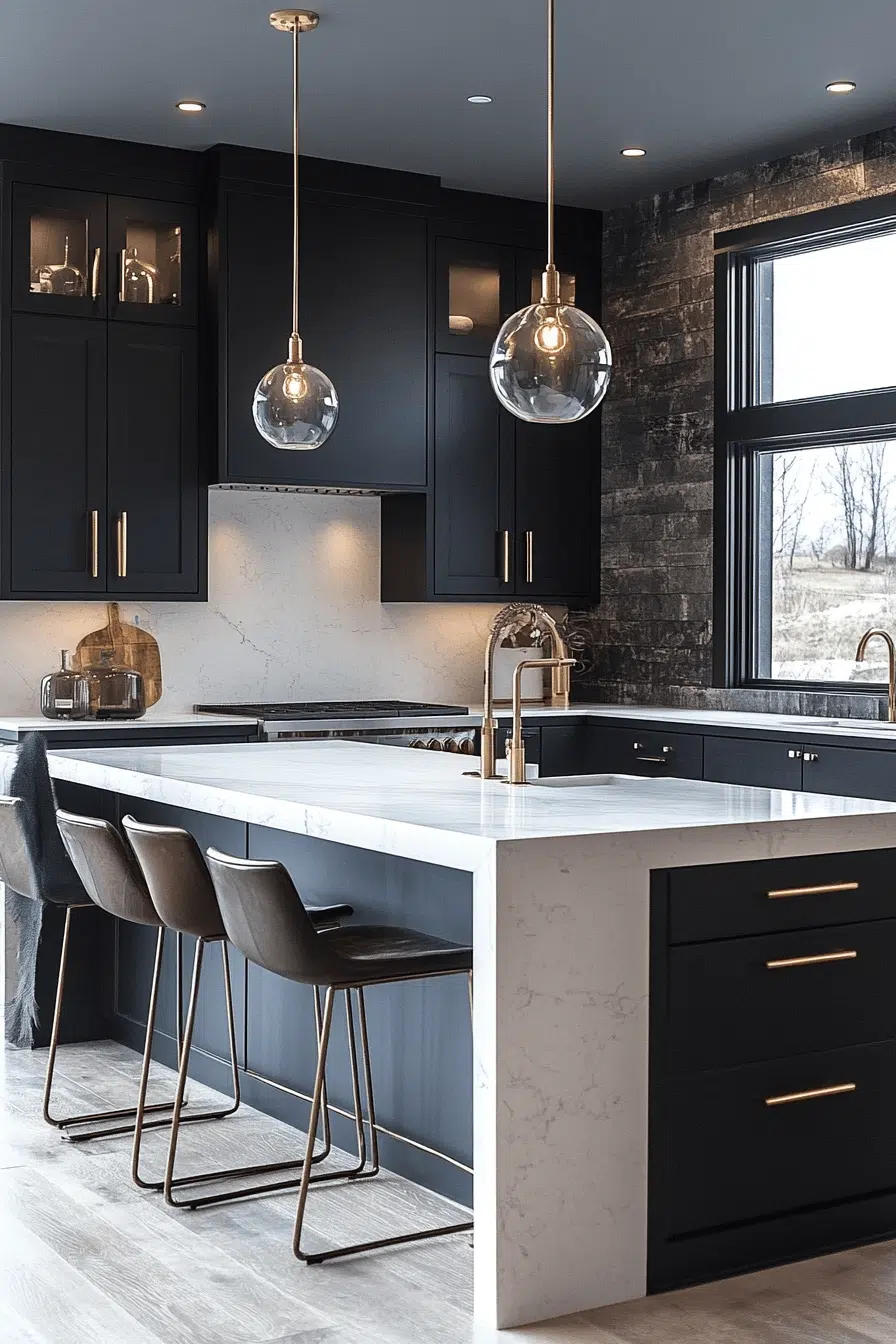 Bold contrast is energizing 2026 kitchen trends with striking architectural pairings. Dark cabinetry against pale stone creates dramatic depth. Clean slab fronts and minimal hardware maintain sharp precision. Thoughtful lighting softens intensity without diminishing impact. This approach resonates because it delivers statement style with modern clarity. Tap to embrace contrast with confidence.