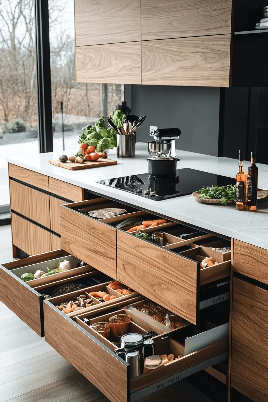 Precision organization is defining next-level efficiency within 2026 kitchen trends. Pull-out systems, hidden inserts, and vertical storage maximize every inch. Clean exteriors conceal highly functional interiors. Streamlined systems improve workflow and reduce stress. This movement succeeds because organization is the backbone of modern design. Tap to unlock smarter storage strategies.