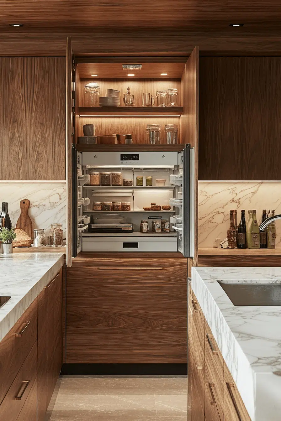 Pantries are no longer hidden corners but curated extensions of 2026 kitchen trends. Glass doors, custom shelving, and soft lighting create boutique-level organization. Coordinated finishes tie the pantry seamlessly to the main kitchen. Organized storage becomes part of the visual story rather than an afterthought. This direction works because beauty and efficiency now coexist effortlessly. Discover how to design a pantry that feels like a showpiece.