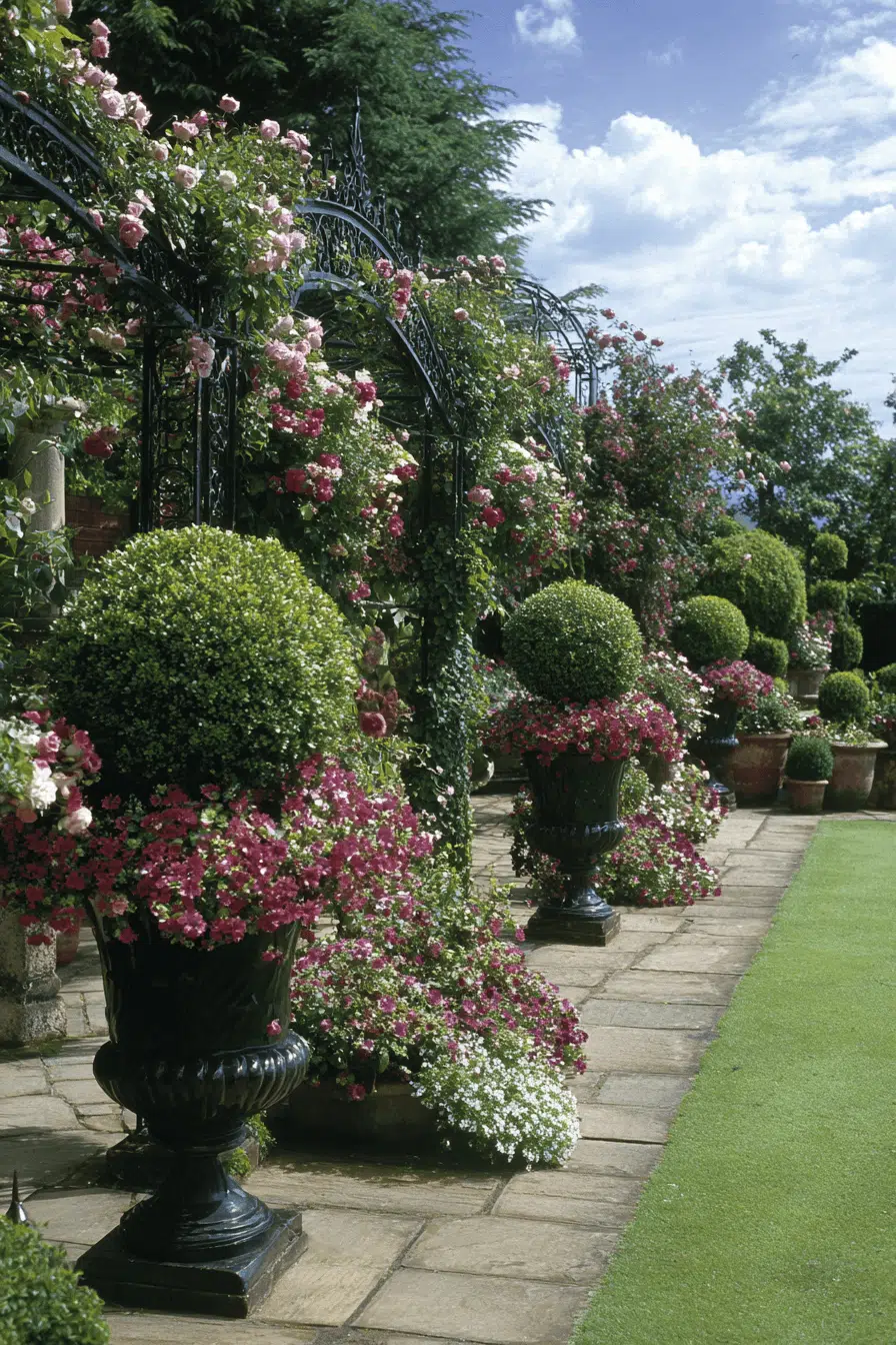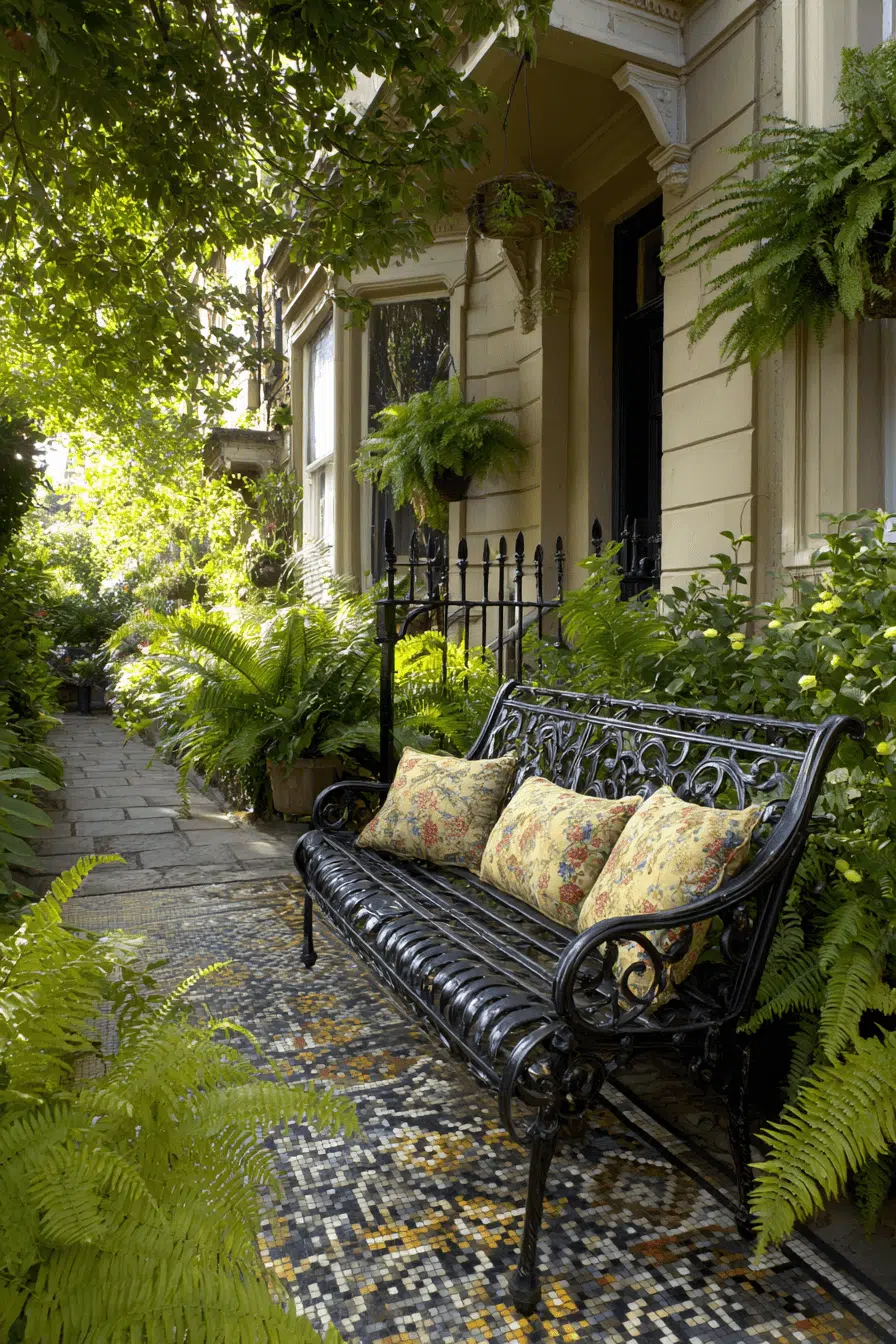 Lush textures and relaxed elegance define gardens influenced by antique yard decor ideas from the Edwardian era. Layered plantings, wicker seating, and decorative tables create terrace-style comfort. Colorful mosaics and floral cushions add refined charm. The space feels tranquil yet richly detailed. Every element encourages rest and appreciation. Bring Edwardian terrace beauty to life and start styling your garden today.