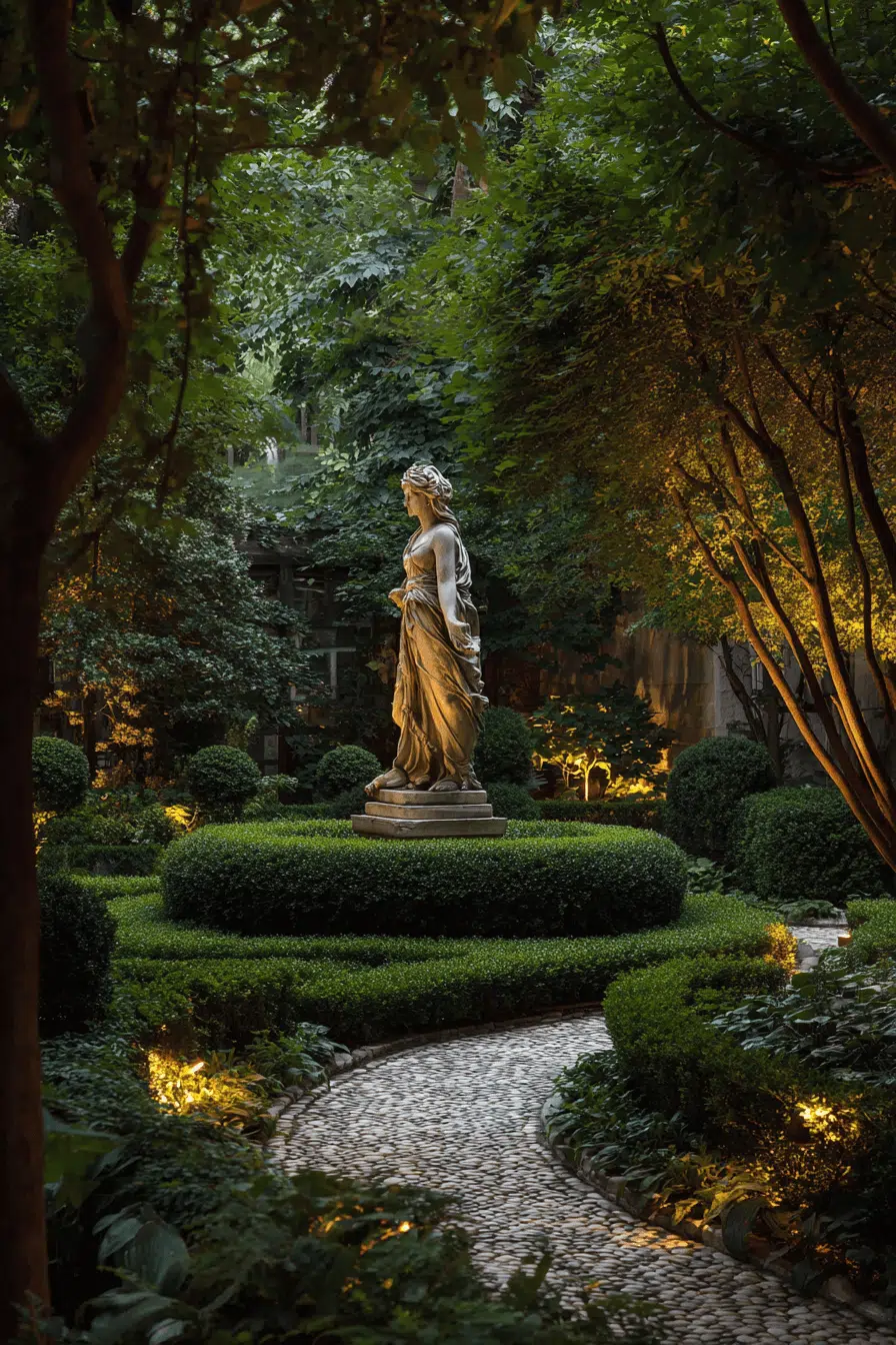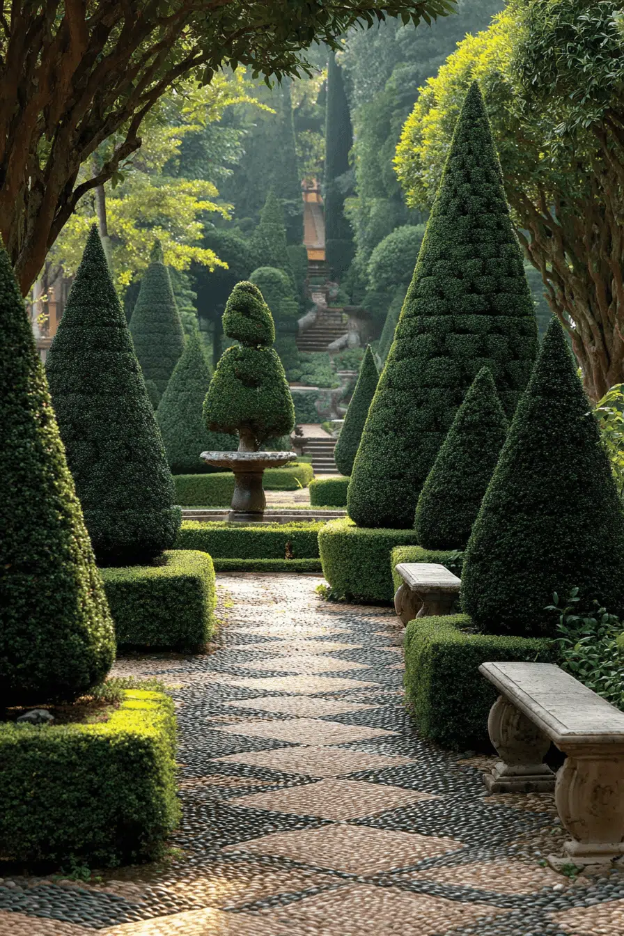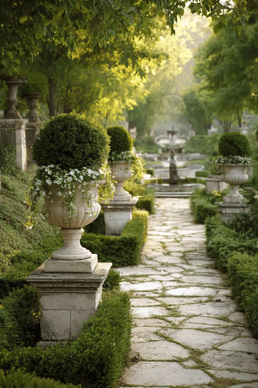 Structured greenery adds sophistication through antique yard decor ideas inspired by Renaissance topiary traditions. Carefully shaped forms introduce rhythm and balance. Formal placement contrasts beautifully with softer plantings. Each piece functions as living sculpture. The garden feels refined and intentional. Refine your landscape with classic topiary inspiration today.