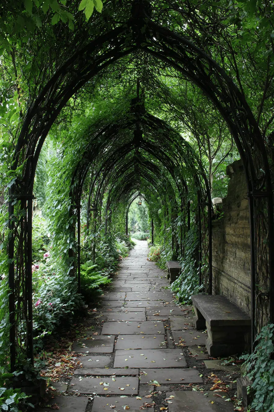 Vertical drama enters the landscape when antique yard decor ideas include Gothic-inspired arches. Pointed forms draw the eye upward and add depth. Ivy and climbing plants soften the structure naturally. Stone accents amplify the medieval mood. The garden gains mystery and presence. Add architectural drama to your yard with Gothic accents today.