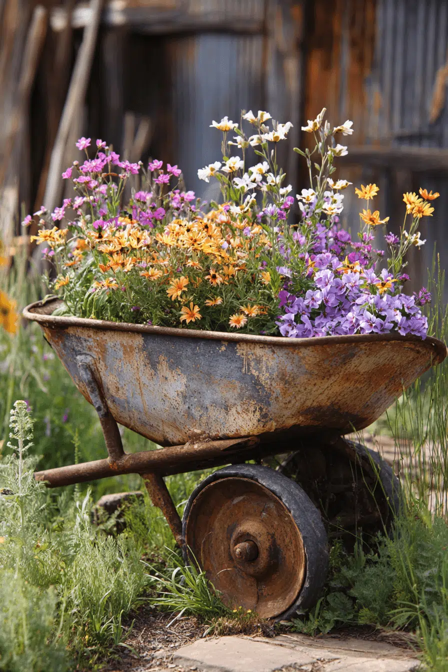 Creative reuse brings charm when antique yard decor ideas transform vintage wheelbarrows into planters. Weathered textures add movement and personality. Cascading blooms soften industrial forms beautifully. These pieces introduce playful nostalgia. History becomes part of the landscape. Try this charming planter idea and refresh your garden creatively.