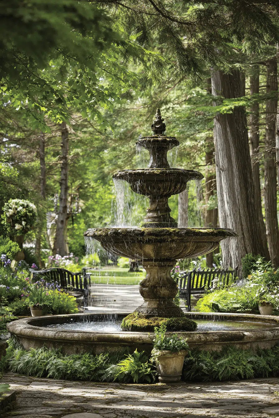 Calming focal points emerge naturally when antique yard decor ideas highlight vintage water features. Patina-finished fountains introduce soothing sound and visual movement. Surrounding greenery helps the feature blend organically into the landscape. Birds and butterflies are drawn to the gentle flow. The result feels peaceful and timeless. Choose a vintage fountain centerpiece and elevate your yard atmosphere today.
