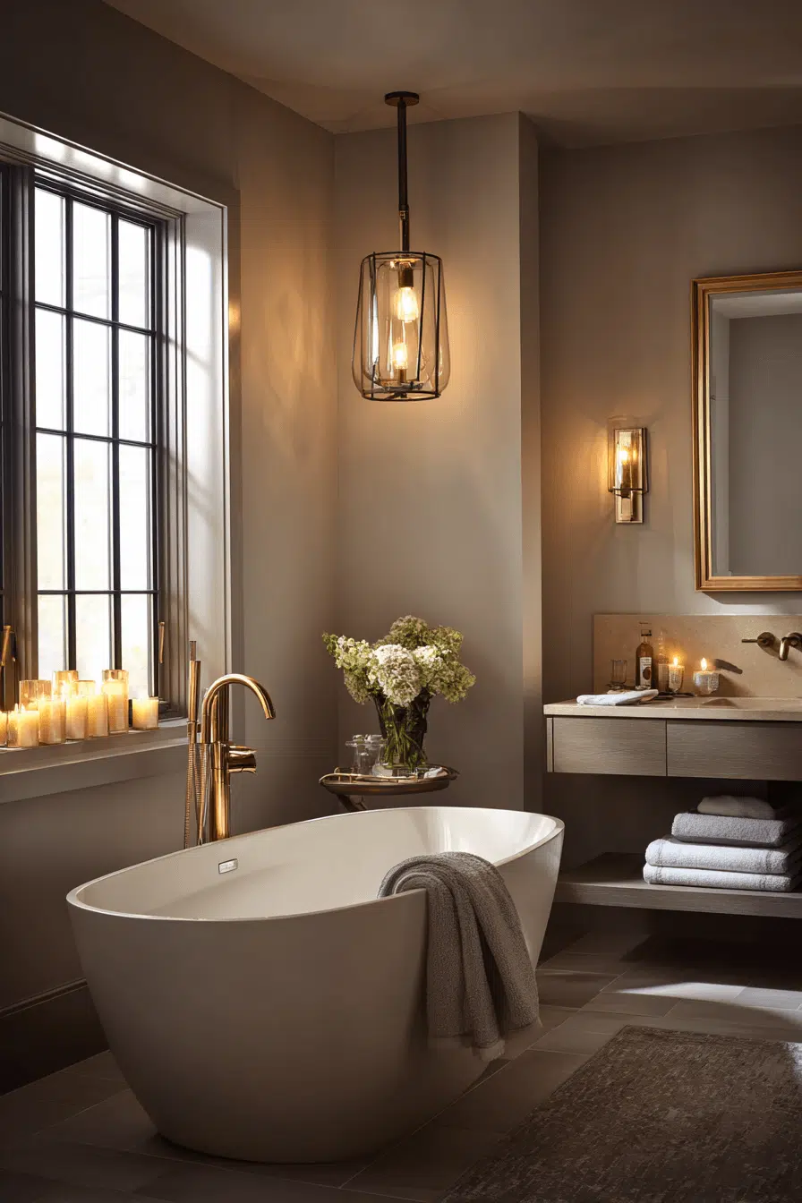 A softly illuminated bathing area instantly upgrades a cozy bathroom experience. Warm wall lights and dimmable fixtures create flattering depth. Paired with a soaking tub and layered textiles, the mood feels luxurious. The lighting shifts the energy from functional to restorative. Small adjustments can dramatically change the ambiance. Discover more glow focused design ideas now.