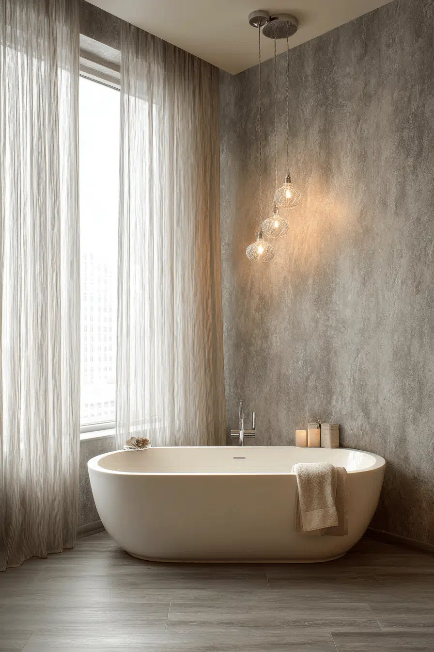 Designing around the bathtub can turn a cozy bathroom into a destination. Surround it with warm lighting and layered fabrics for maximum comfort. Subtle color palettes maintain tranquility. Even compact spaces can feel luxurious with thoughtful planning. The focus shifts toward experience and relaxation. Create your own spa moment at home now.