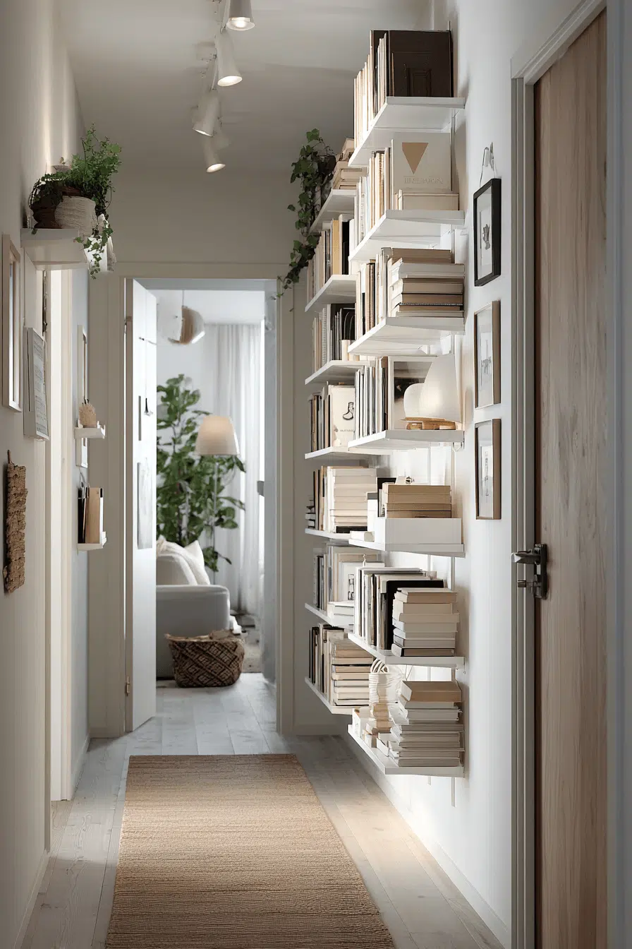 10. Slim Hallway Shelf Setup