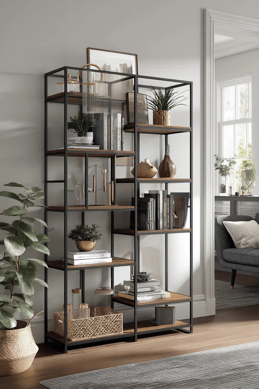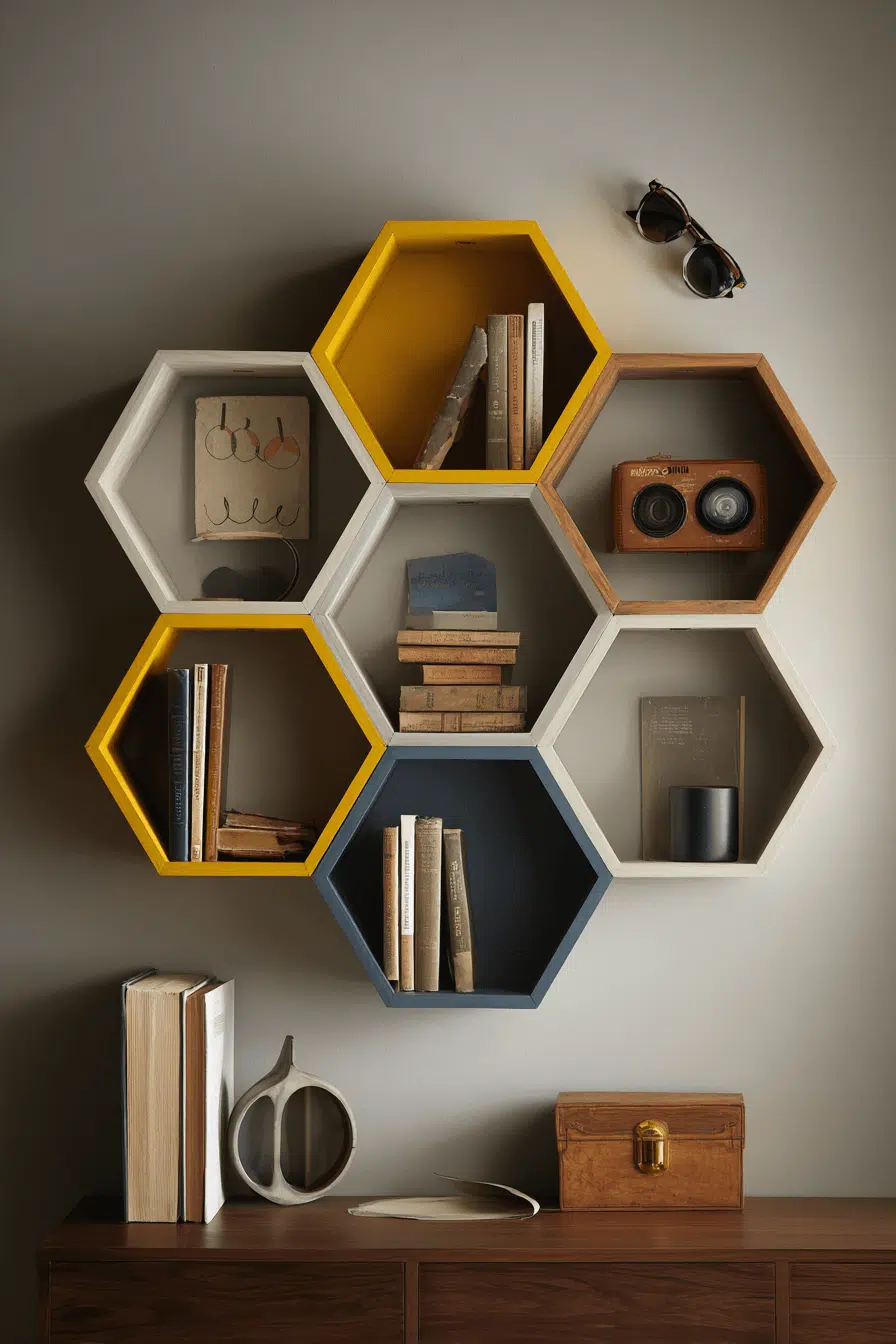 23. Geometric Shelf Display Style