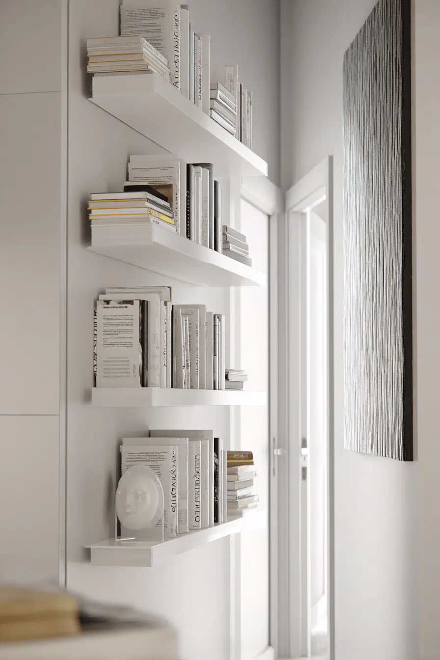 Wall-mounted ledges redefine bookshelves for small spaces with a simple display solution that keeps books visible and organized. Slim profiles work well on narrow walls. Face-forward displays turn books into decor. Adjustable placement allows flexibility. Minimal design keeps everything light. The space feels organized and stylish. Showcase your books in a fresh way today!