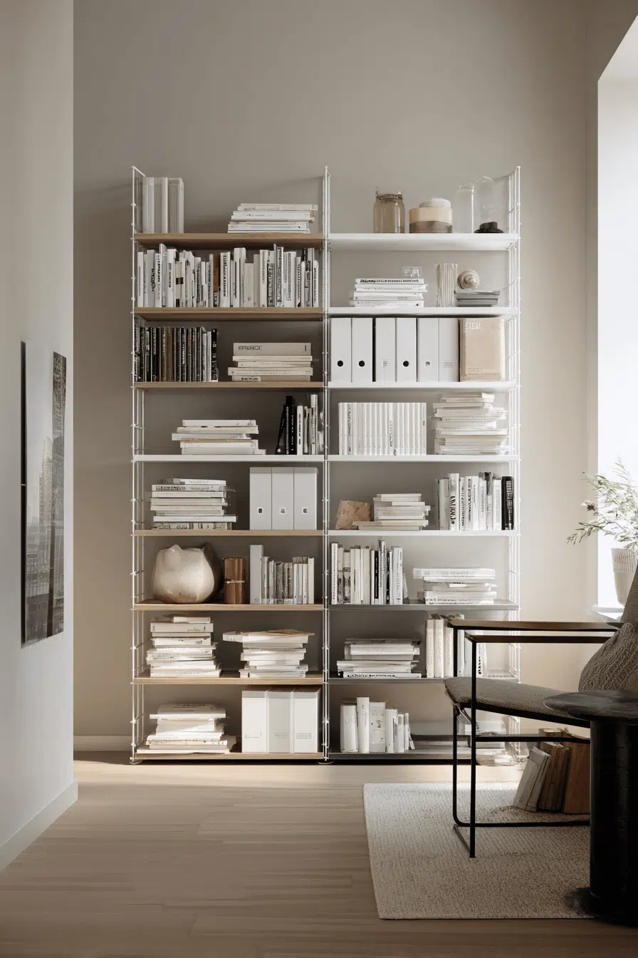 Apartment shelving solutions maximize bookshelves for small spaces by making every inch count in compact layouts. Vertical designs prevent wasted space. Neutral tones keep the room feeling open. Multi-functional features add practicality. Smart organization avoids clutter. The design feels efficient and modern. Optimize your small space with ease today!