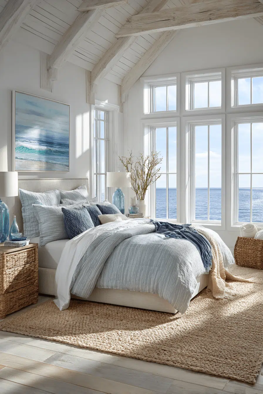 Transforming your bedroom into a coastal sanctuary starts with the right design inspiration. Whether you’re drawn to soft neutrals, vibrant ocean blues, or warm sun-bleached woods, beach house bedrooms offer endless possibilities for creating a peaceful retreat. These 27 stunning beach house bedroom ideas showcase a range of styles—from modern minimalist to cozy layered looks—each capturing the relaxed elegance of coastal living. Discover how natural textures, airy fabrics, and thoughtfully chosen color palettes can bring the calming essence of the seaside into your personal space, creating a bedroom that feels like a permanent vacation.