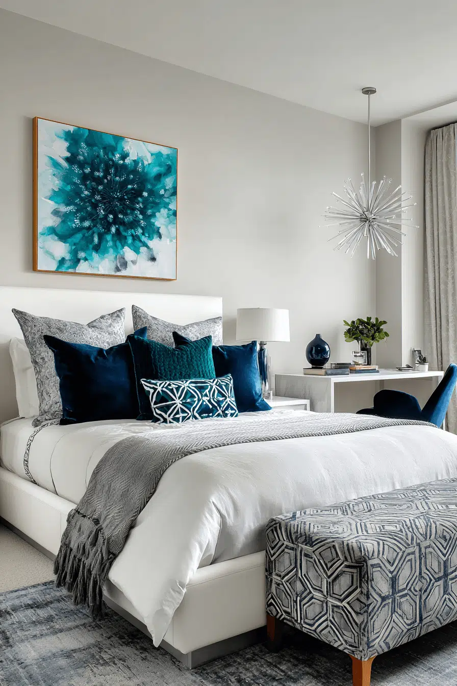 Statement pieces define these guest bedroom ideas, adding bold personality while maintaining a welcoming feel. Rich colors and striking decor create a focal point. Clean surroundings balance the design. The space feels vibrant yet refined. Perfect for making a lasting impression. Guests will love the bold look. Design a standout guest room today!