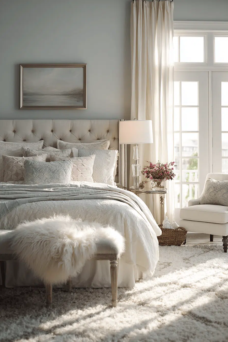 Light and airy styling transforms these guest bedroom ideas into peaceful, refreshing environments. White tones layered with soft textures create a serene foundation. Subtle variations in fabric add depth. The space feels open and calming. Easy to update with seasonal accents. Guests will enjoy the tranquil vibe. Refresh your guest room with this bright approach!