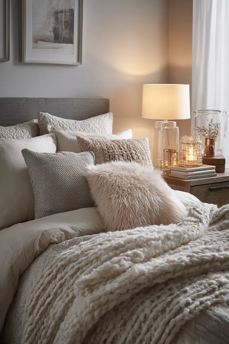 Texture-driven design adds warmth and dimension to these guest bedroom ideas, making even simple spaces feel inviting. Layered materials like knits and velvets create a cozy atmosphere. Neutral tones allow textures to stand out. The design feels balanced and engaging. Guests will love the tactile comfort. The room feels warm and stylish. Add depth to your guest room effortlessly!