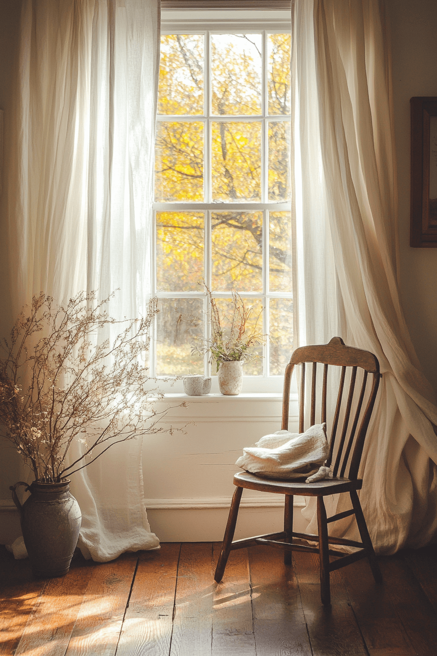 Let sunlight flow through history with antique farmhouse decor ideas for your windows. Wooden shutters and lace panels filter light in the most romantic way. The textures dance beautifully with the changing seasons. Every glance feels nostalgic yet fresh.