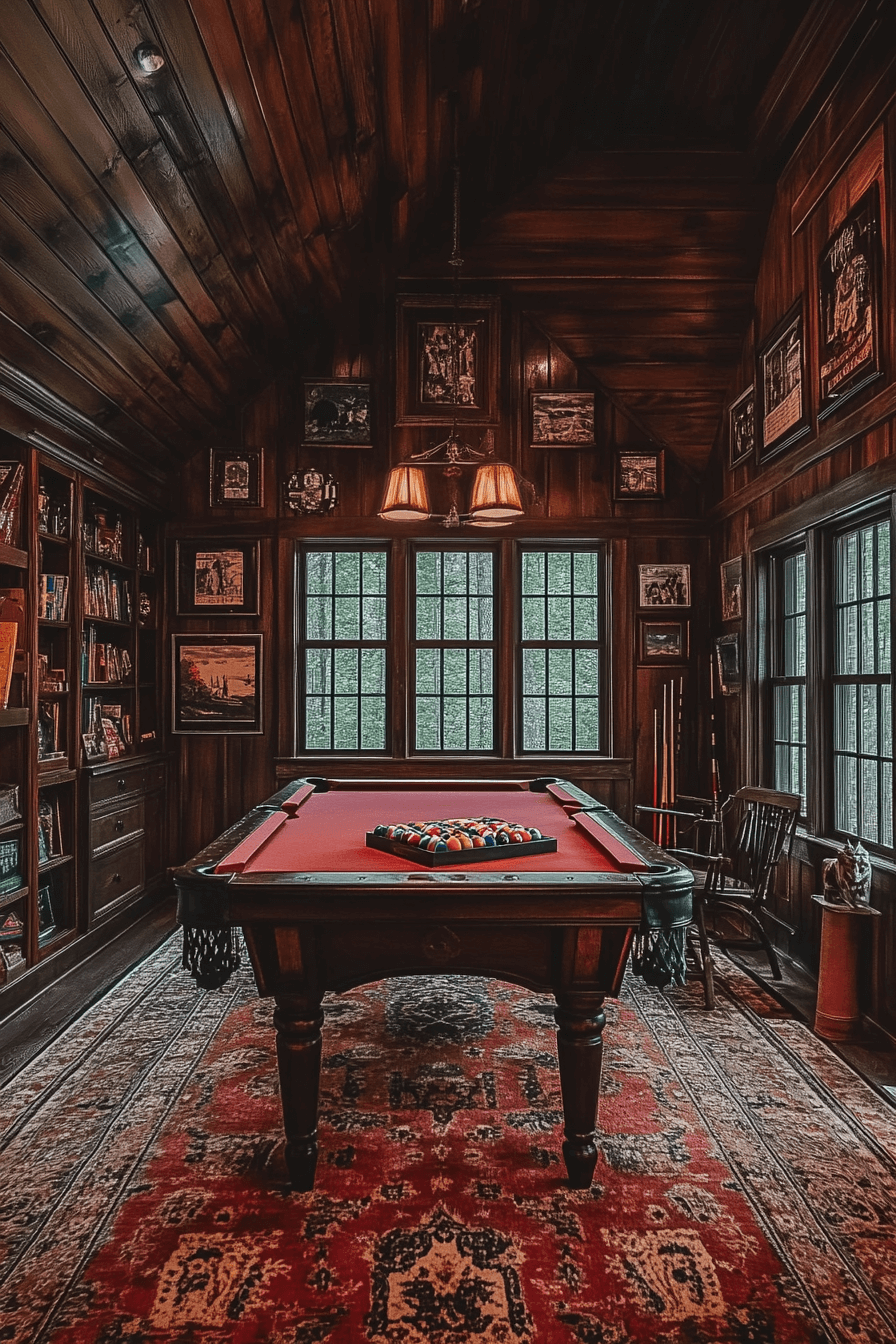 Fill your game room with personality using antique farmhouse decor ideas that revive old-fashioned fun. A wooden pool table, metal signs, and retro lighting make the space unforgettable. The vintage aesthetic adds life and laughter to every play. It’s a room built for smiles and stories.