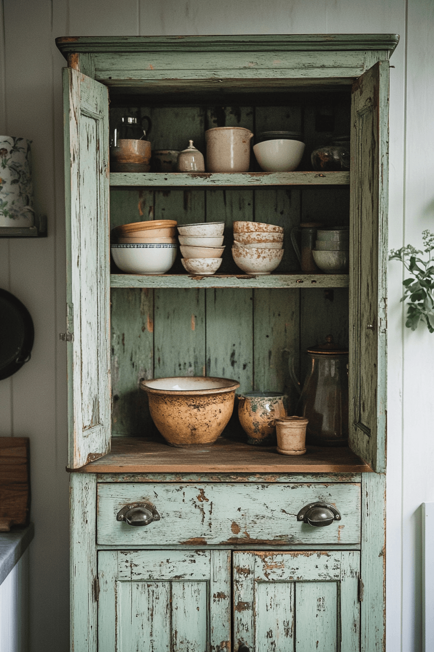Step back in time with a pantry designed through antique farmhouse decor ideas that blend function and nostalgia. Worn wooden shelves, mason jars, and old ceramic crocks create a space that feels alive with history. The natural textures and soft tones invite warmth into every meal. Each item feels hand-picked from another era.