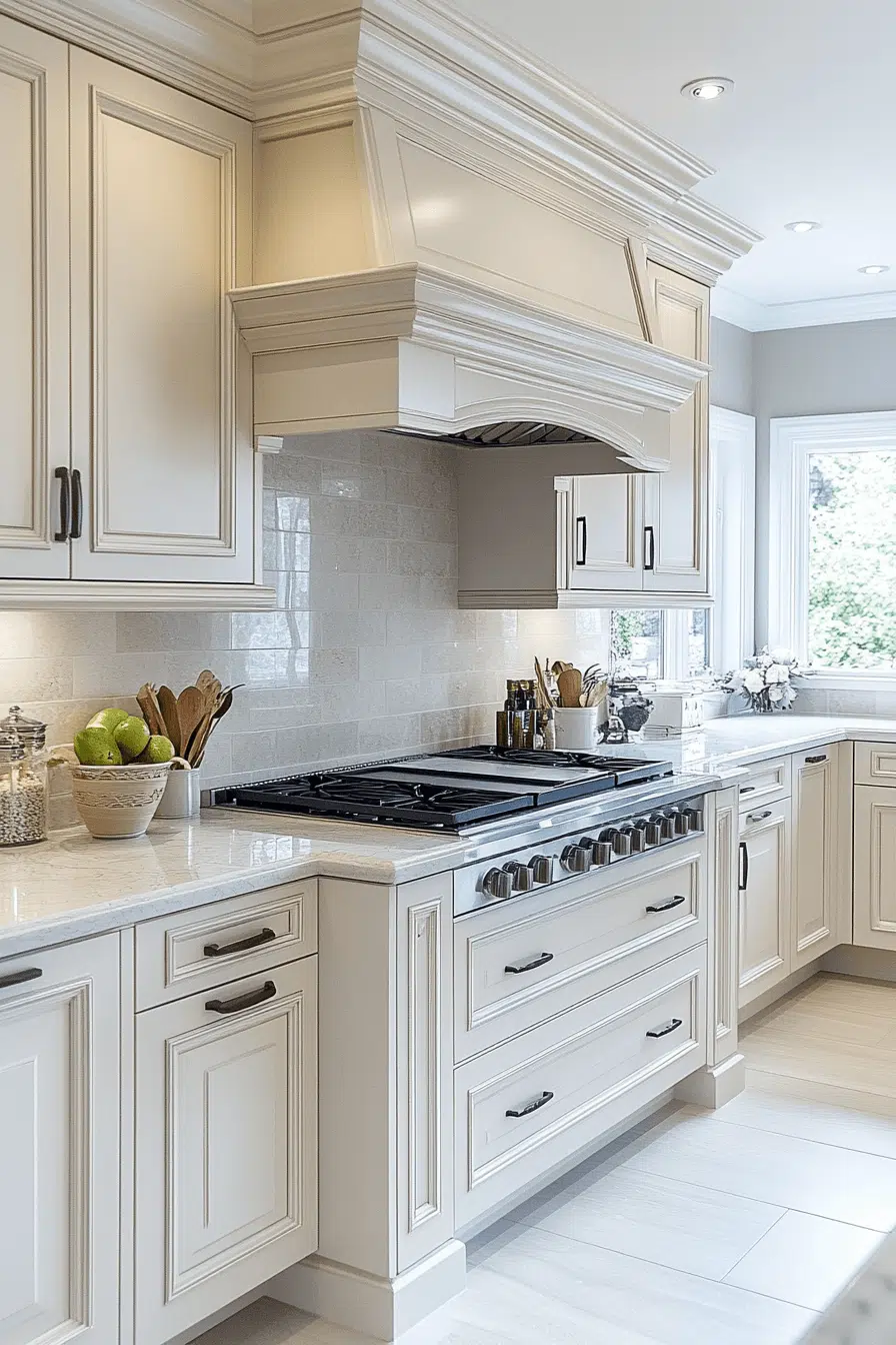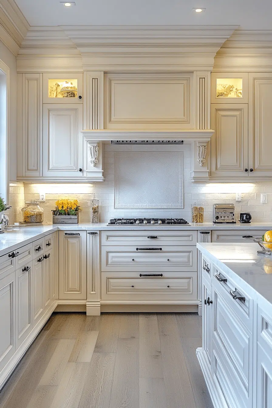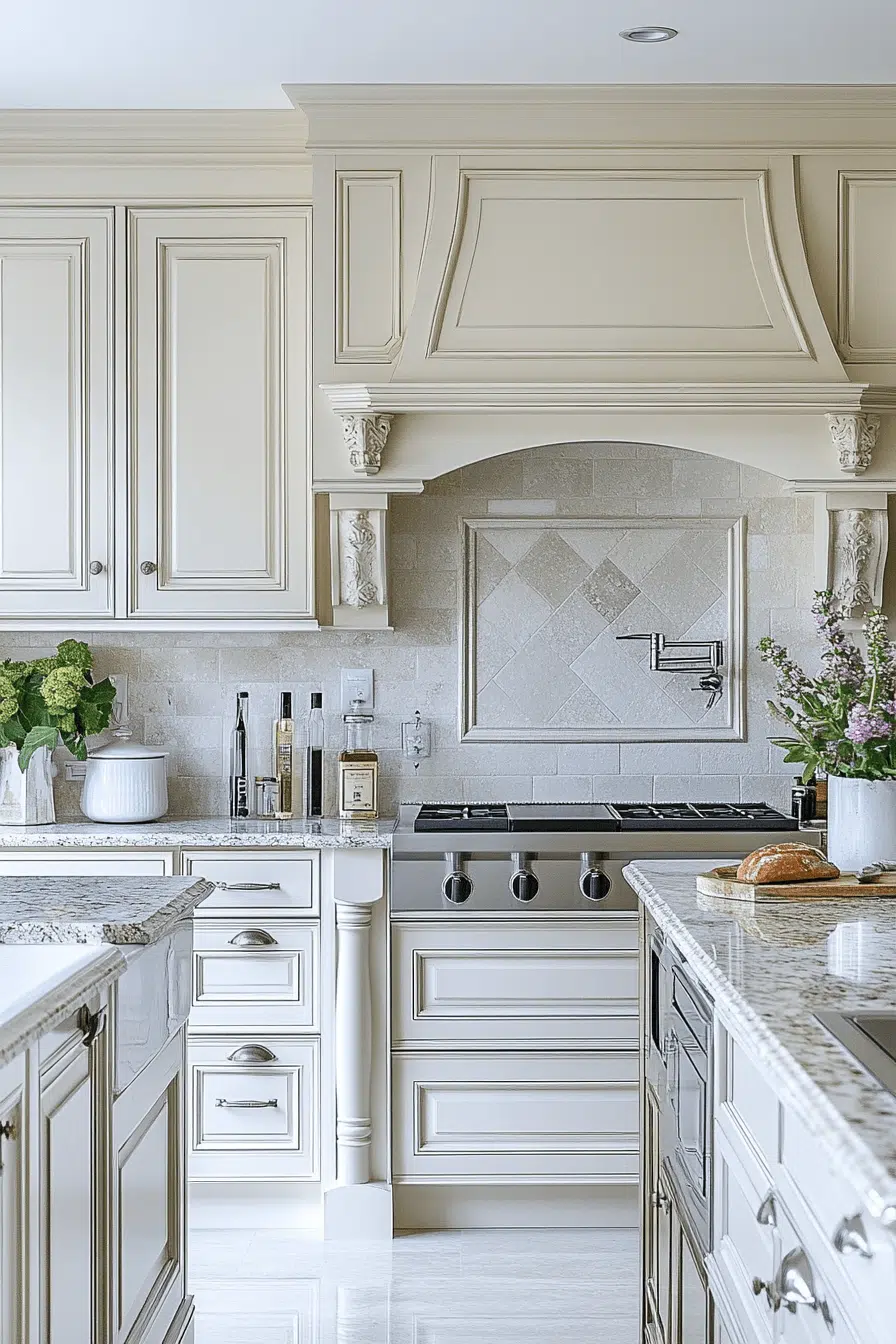 Refined luxury becomes approachable in kitchens anchored by antique white kitchen cabinets with elegant aging. Their pristine appearance elevates the room while antique texture adds richness. When paired with quality materials, the space feels timeless and upscale. Comfort and sophistication coexist naturally. This look appeals to lovers of quiet luxury. Find more elevated kitchen designs to inspire you.