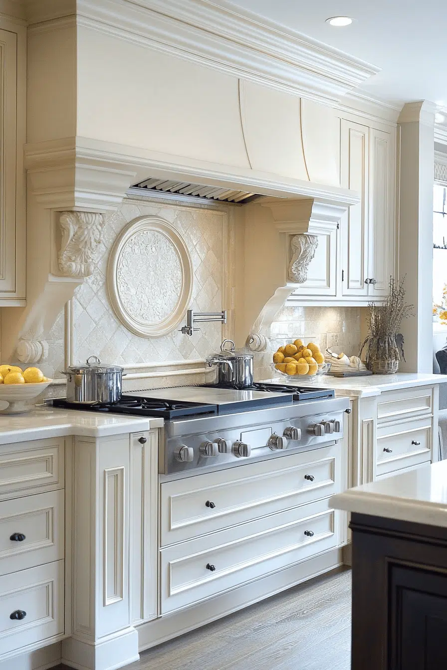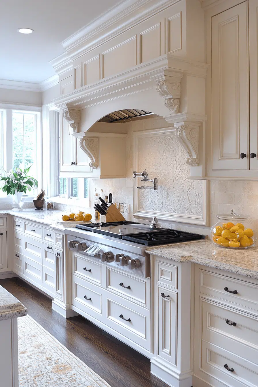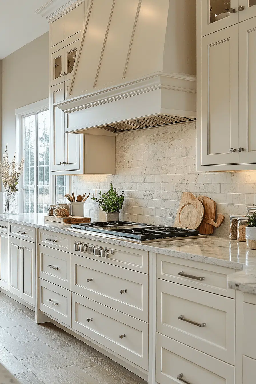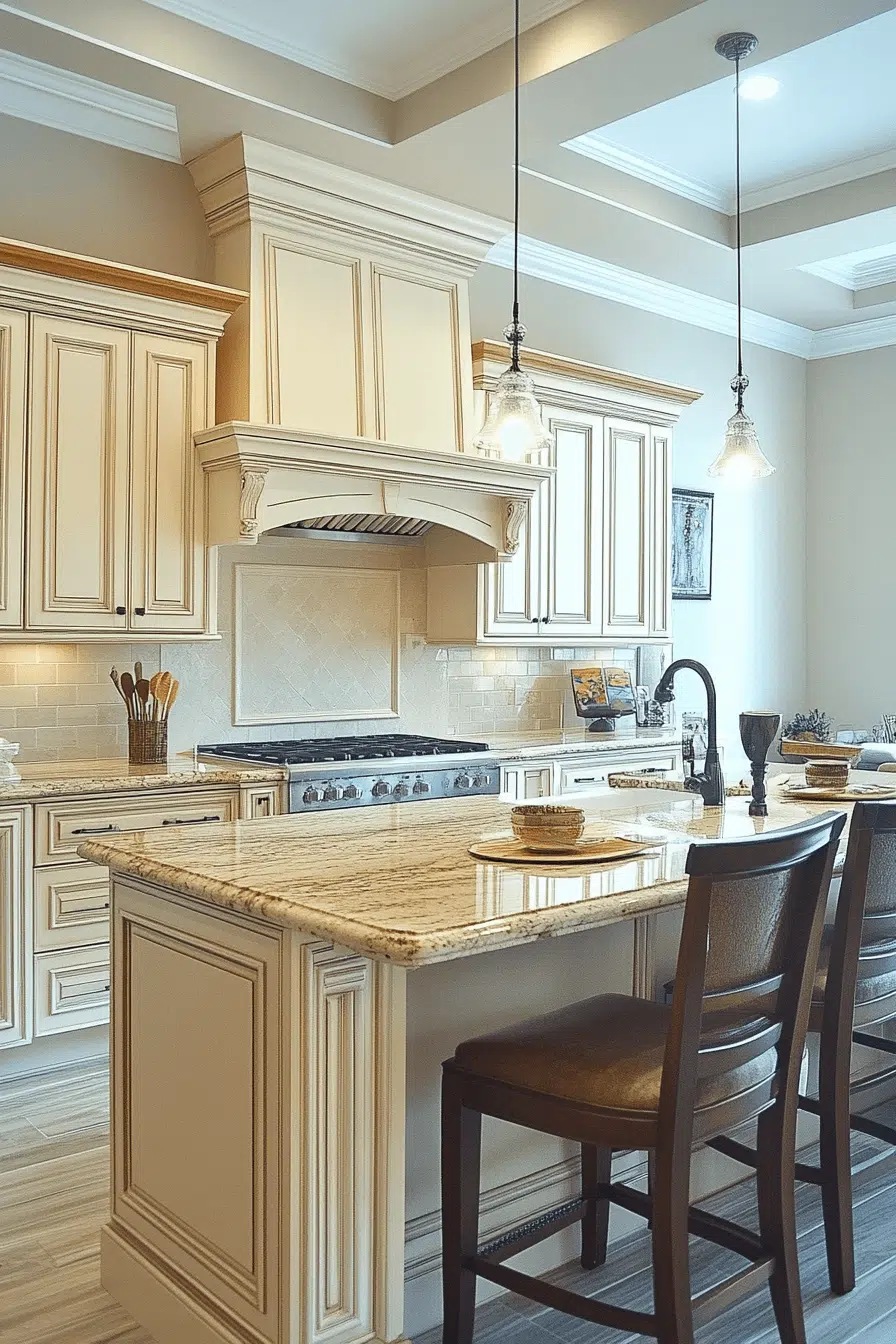 Refined luxury becomes approachable in kitchens anchored by antique white kitchen cabinets with elegant aging. Their pristine appearance elevates the room while antique texture adds richness. When paired with quality materials, the space feels timeless and upscale. Comfort and sophistication coexist naturally. This look appeals to lovers of quiet luxury. Find more elevated kitchen designs to inspire you.