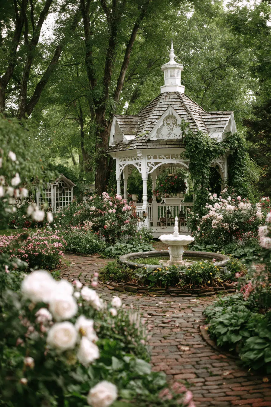 Outdoor spaces gain romance and presence when antique yard decor ideas include historic gazebo designs as focal points. Iron scrollwork or carved wooden structures offer shade while adding architectural interest. Climbing vines soften the framework and create lush movement. Vintage furnishings beneath the structure invite lingering moments of rest. These gazebos transform open yards into intentional destinations. Design a charming garden centerpiece and explore gazebo inspiration now.