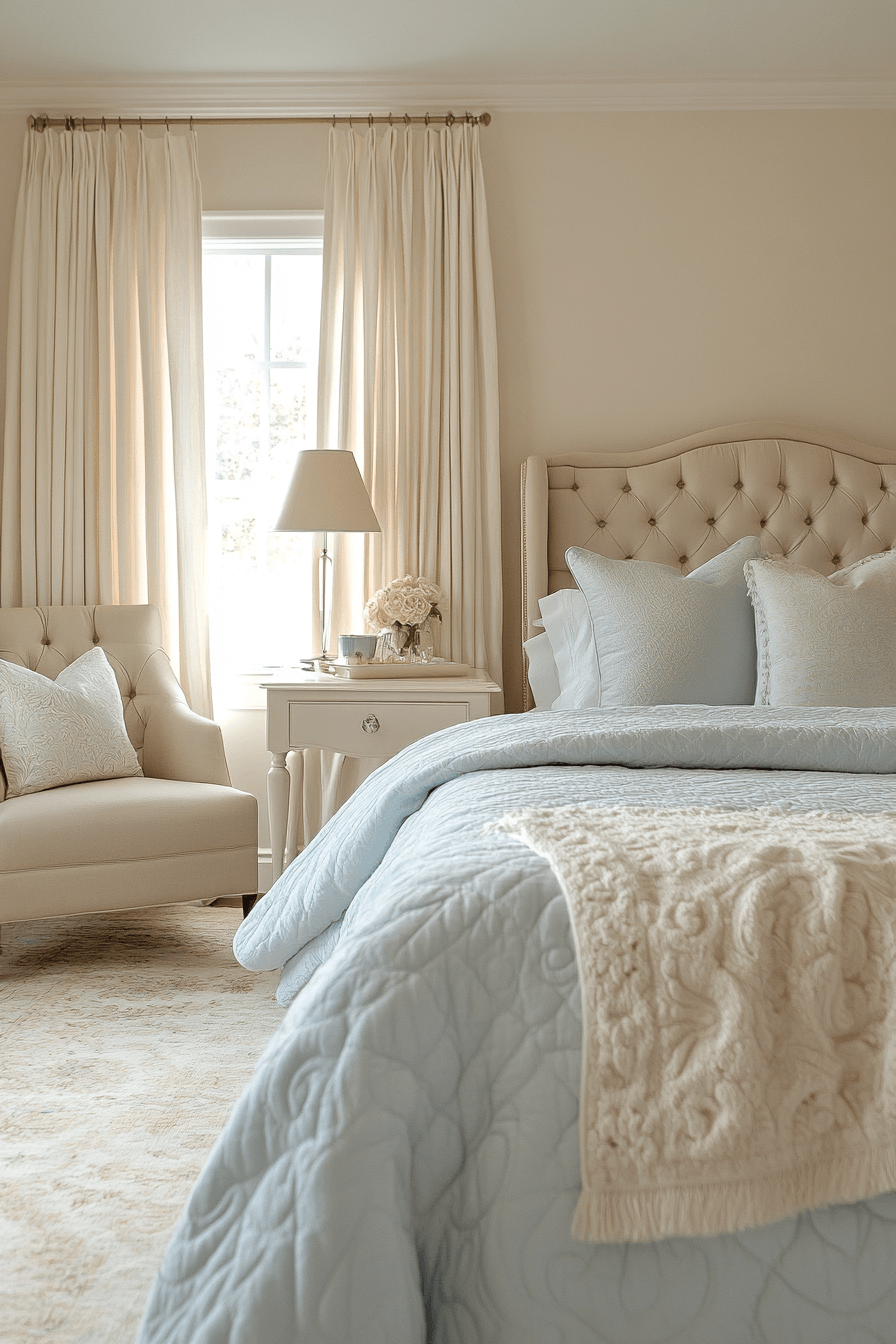 Cream tones in a bedroom create instant comfort and a sense of retreat. This apartment aesthetic cozy design uses plush bedding, soft curtains, and layered textiles for a truly restful space. A few carefully chosen decorative accents add personality without overpowering the calm atmosphere. The look remains versatile and timeless, making it easy to refresh over time.