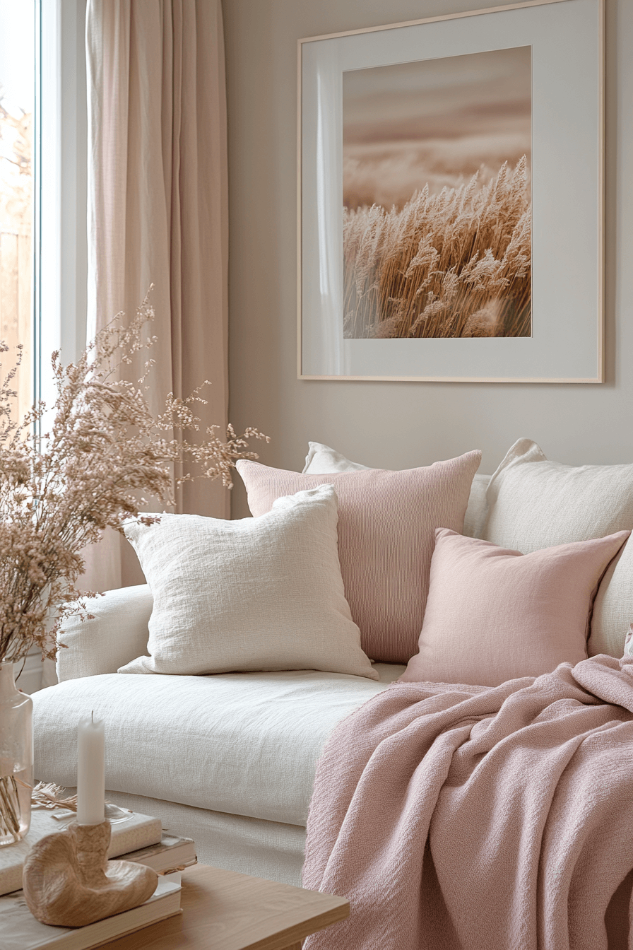 Blush and taupe shades bring warmth and sophistication to your space. This apartment aesthetic cozy mix blends romantic tones with modern neutrals for a balanced look. Soft textiles create a layered, comfortable feel. Minimal clutter keeps the style fresh and open.