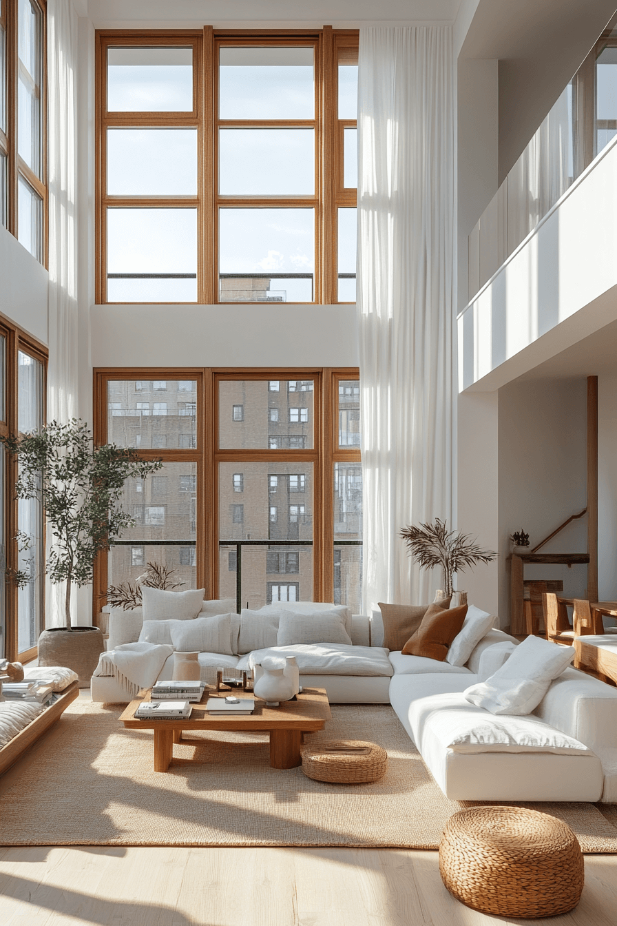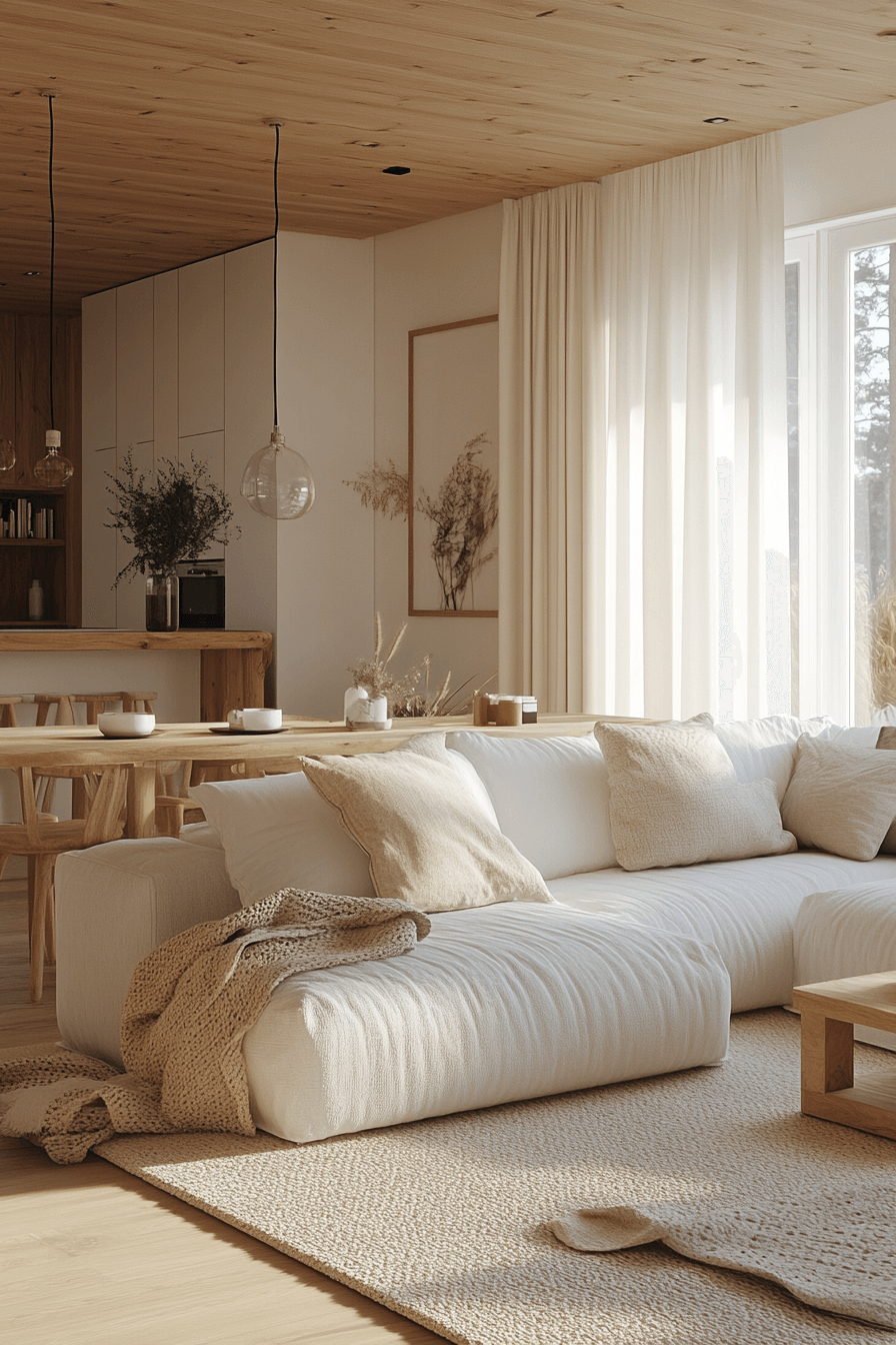 Tan and white open layouts feel bright, airy, and full of life. This apartment aesthetic cozy style blends natural elements like wood and rattan with clean, modern details. Neutral tones keep the space versatile and easy to style through changing trends. Minimal accessories ensure an uncluttered, expansive feel that invites relaxation.