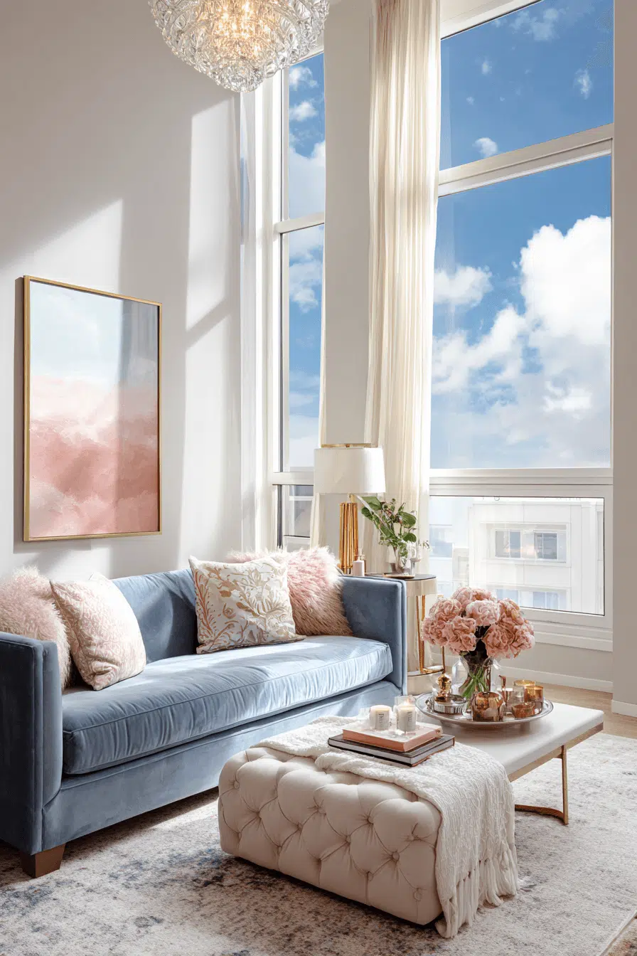 Understated metallic accents add subtle glamour to apartment inspiration. Brushed brass and soft gold finishes catch light beautifully. Plush fabrics balance shine with warmth. The aesthetic feels polished but never flashy. Small details create big impact. Add a touch of refined sparkle to your apartment now.