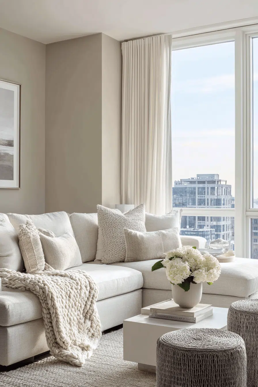 A warm ivory and almond palette delivers apartment inspiration that feels instantly soothing and elevated. Soft tonal layering creates cohesion without sacrificing depth. Natural light reflects beautifully across creamy walls and textured fabrics. Clean silhouettes prevent visual overload in smaller layouts. The result feels polished yet approachable. Bring this calming tonal elegance into your apartment today.