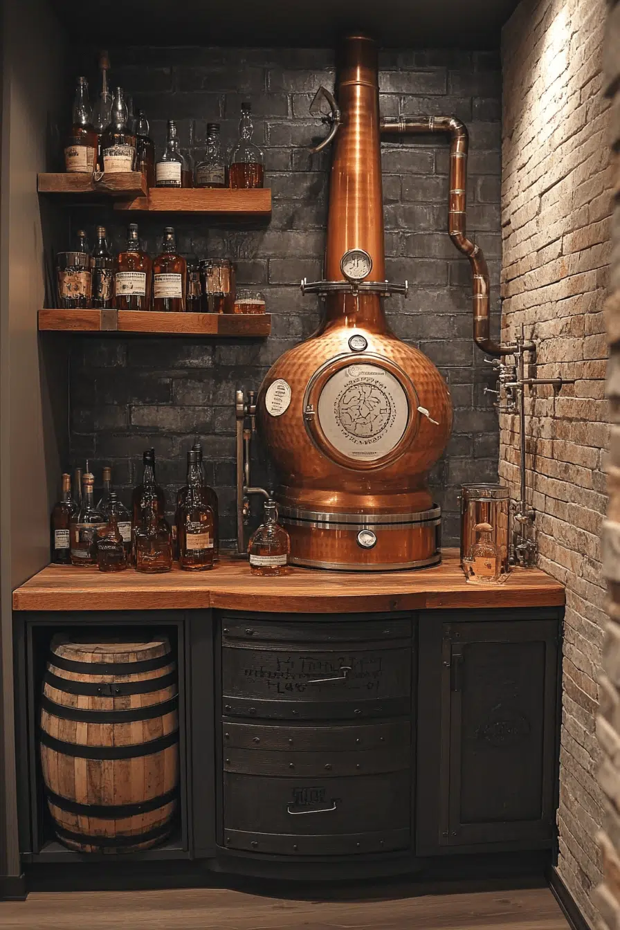 Hands-on craftsmanship elevates basement bar ideas designed as home distilleries. Functional materials support practical use. Dedicated tasting areas encourage learning and experimentation. The space feels authentic and purposeful. It blends hobby and hospitality seamlessly. Explore home distillery basement bar ideas with artisanal appeal.