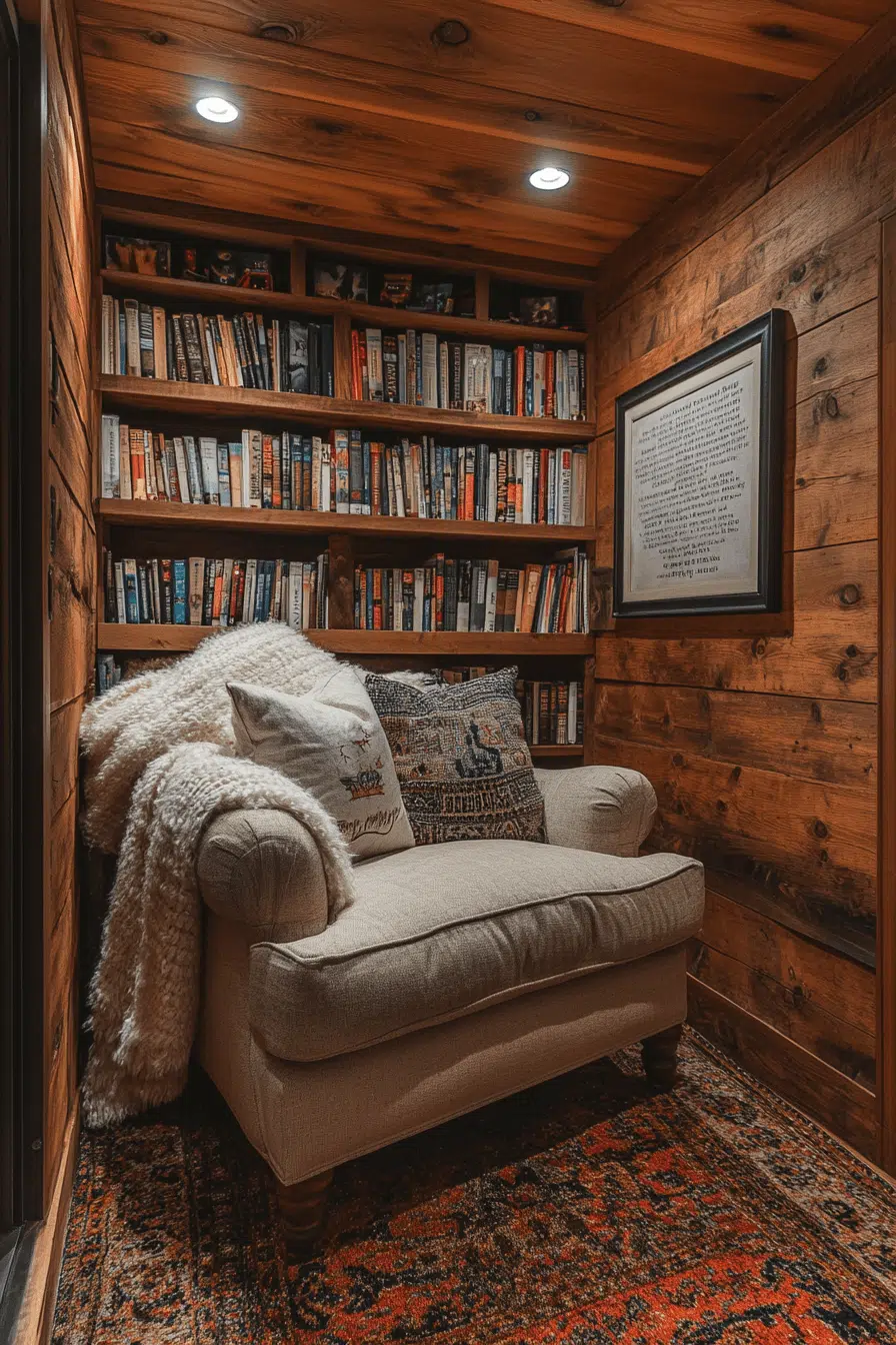 Organic textures bring character to lower levels through basement family room ideas inspired by rustic comfort. Natural wood tones, stone accents, and warm colors ground the design beautifully. Soft lighting enhances depth and visual interest. The room feels welcoming without appearing heavy. This style suits relaxed gatherings perfectly. Discover rustic basement charm today!