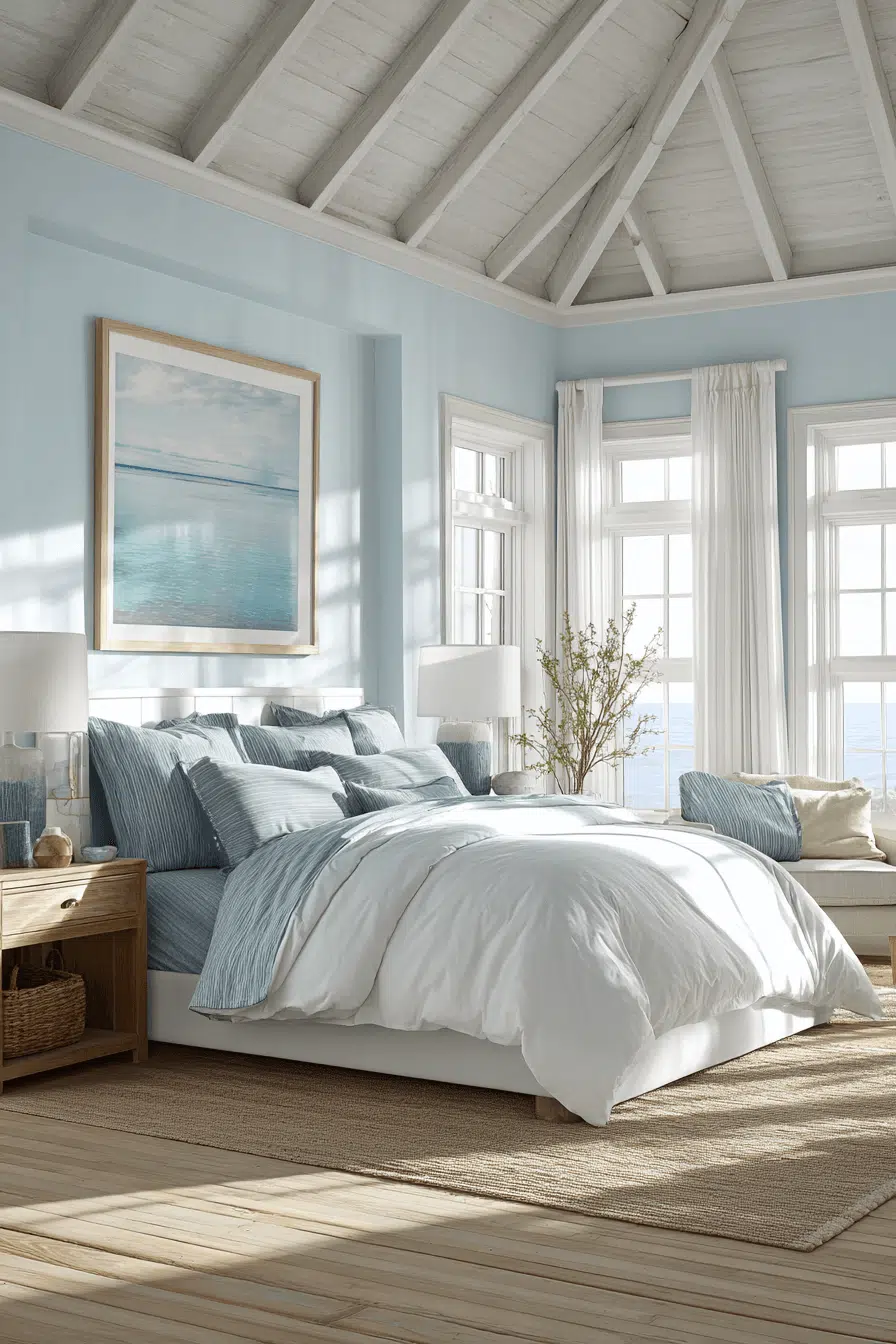 Harbor-inspired hues blend slate blue, gray, and white into sophisticated beach house decor. These tones reflect marina mornings and quiet docks. Pair with streamlined furniture for a contemporary finish. Add subtle texture to maintain warmth. Keep the atmosphere bright and cohesive. Click to bring refined harbor style indoors.