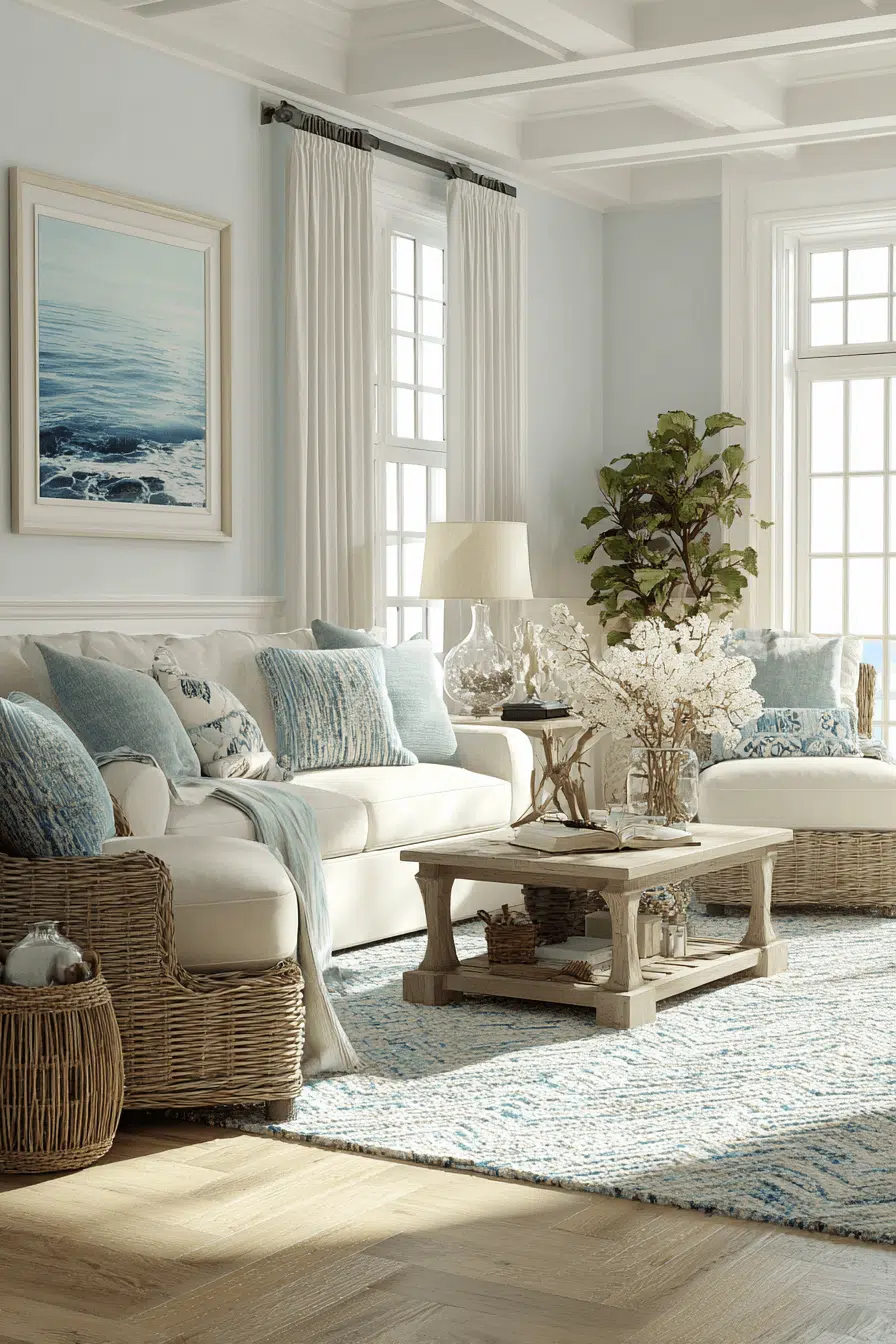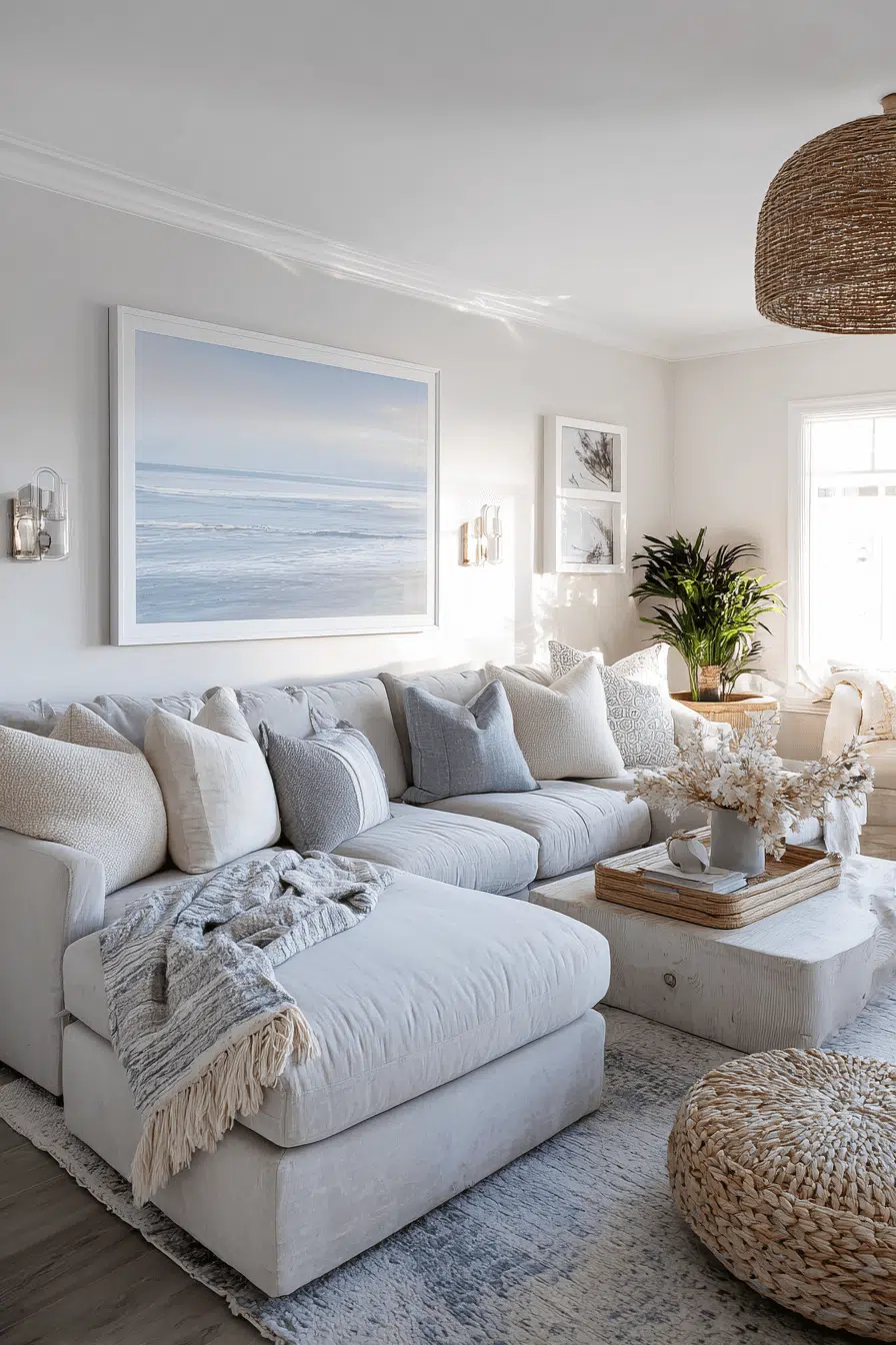 Seaside serenity styling turns beach house decor into a calming sanctuary. Layer soft neutrals with gentle blue tones for ultimate relaxation. Simple furnishings and meaningful accents enhance comfort. Allow natural light to flood the space. Keep décor minimal but intentional. Click to transform your home into a serene coastal haven.