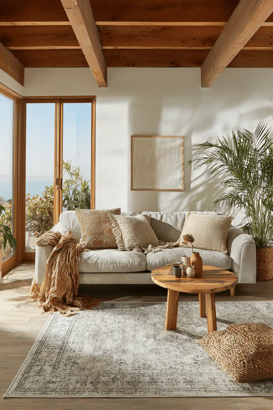 A boho beach blend layers relaxed patterns and natural textures into beach house decor. Macramé details, woven rugs, and soft ocean hues create warmth. The mix feels collected yet cohesive. Keep tones harmonious to prevent clutter. Layer lighting for cozy ambiance. Tap to merge bohemian charm with coastal calm.