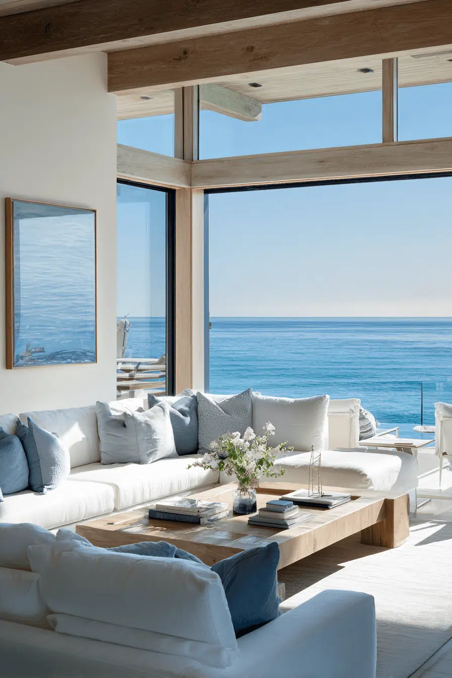 Sleek seaside style modernizes traditional beach house decor with clean silhouettes and subtle nautical touches. Streamlined furnishings paired with textured throws create balance. The combination of minimal structure and relaxed materials prevents the space from feeling overly themed. Matte metals or brass accents add contemporary polish. Keep tones soft and ocean-inspired. Tap to refresh your coastal look with modern elegance.