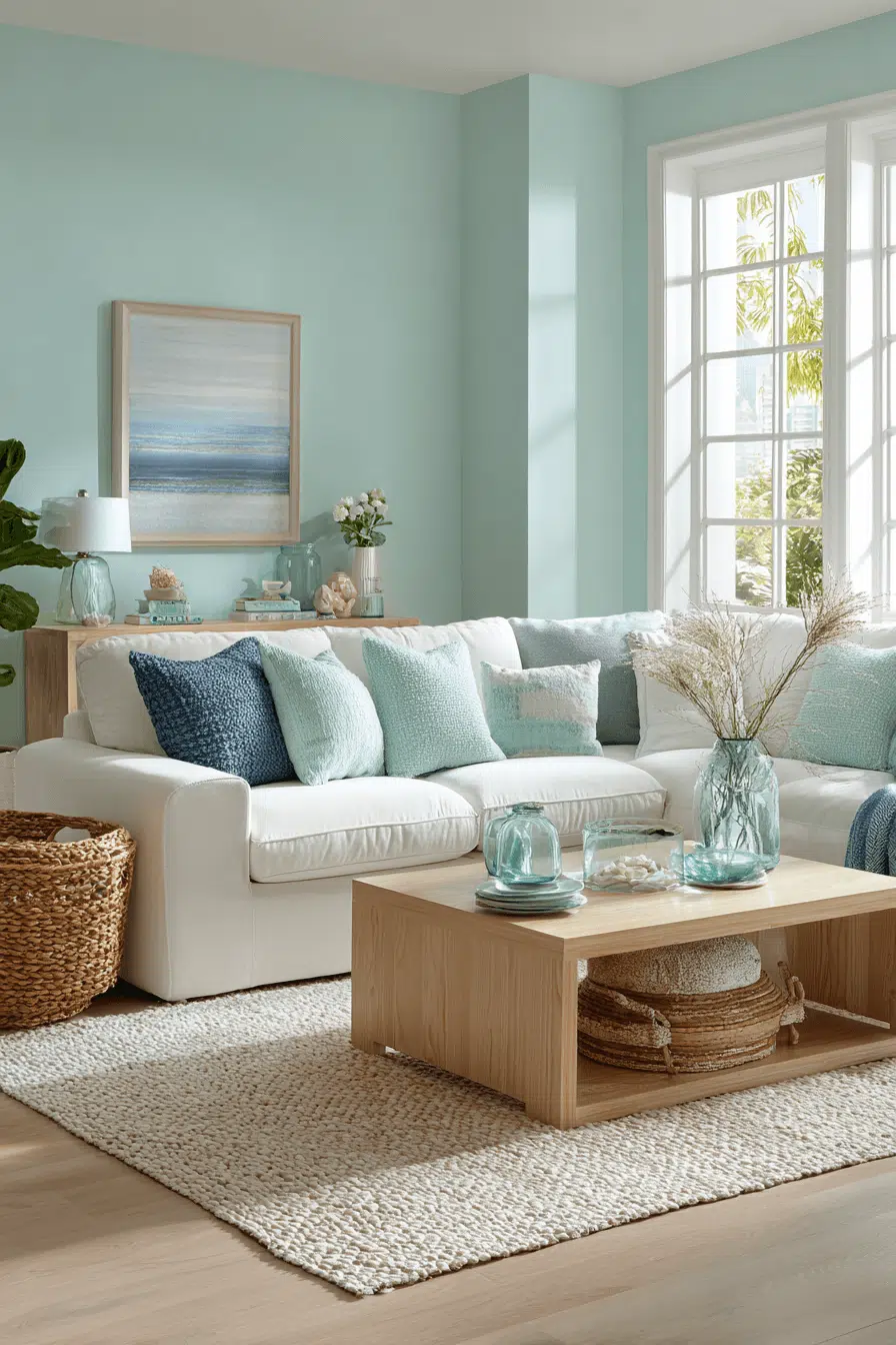 Ocean mist accents bring fresh aqua and pale blue tones into beach house decor. These colors feel light and playful when layered against sandy neutrals. Their softness adds dimension without overwhelming the room. Pair with woven textures and pale woods for cohesion. Keep styling balanced and airy. Tap to brighten your beach house decor with gentle sea hues.