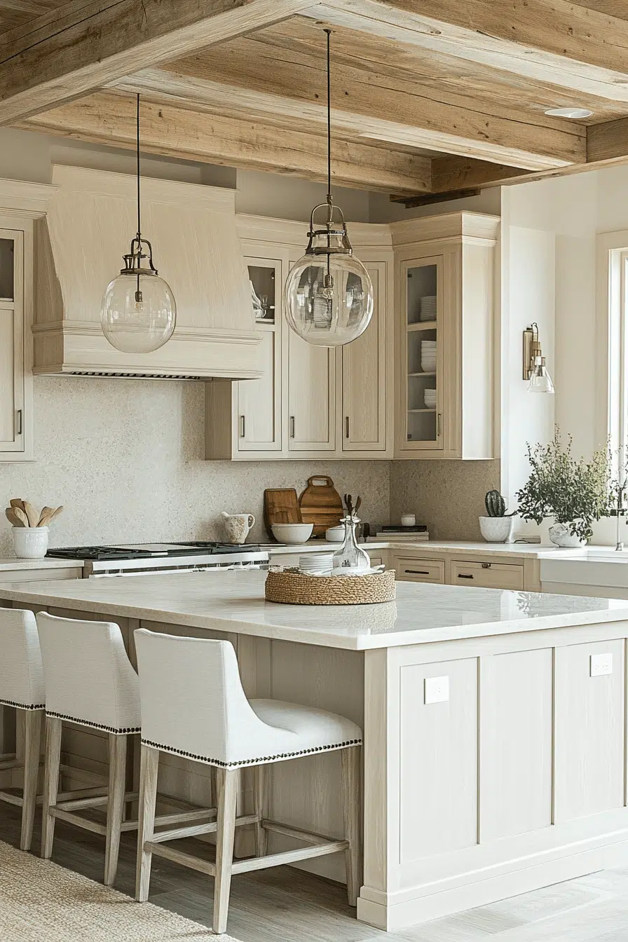 Creamy neutrals layered with textured finishes create a calming beach house kitchen that feels cohesive and polished. Subtle contrast keeps the space from feeling flat. Natural light enhances every detail. The design feels effortless and timeless. It’s relaxed sophistication at its finest. Tap to embrace neutral coastal refinement.