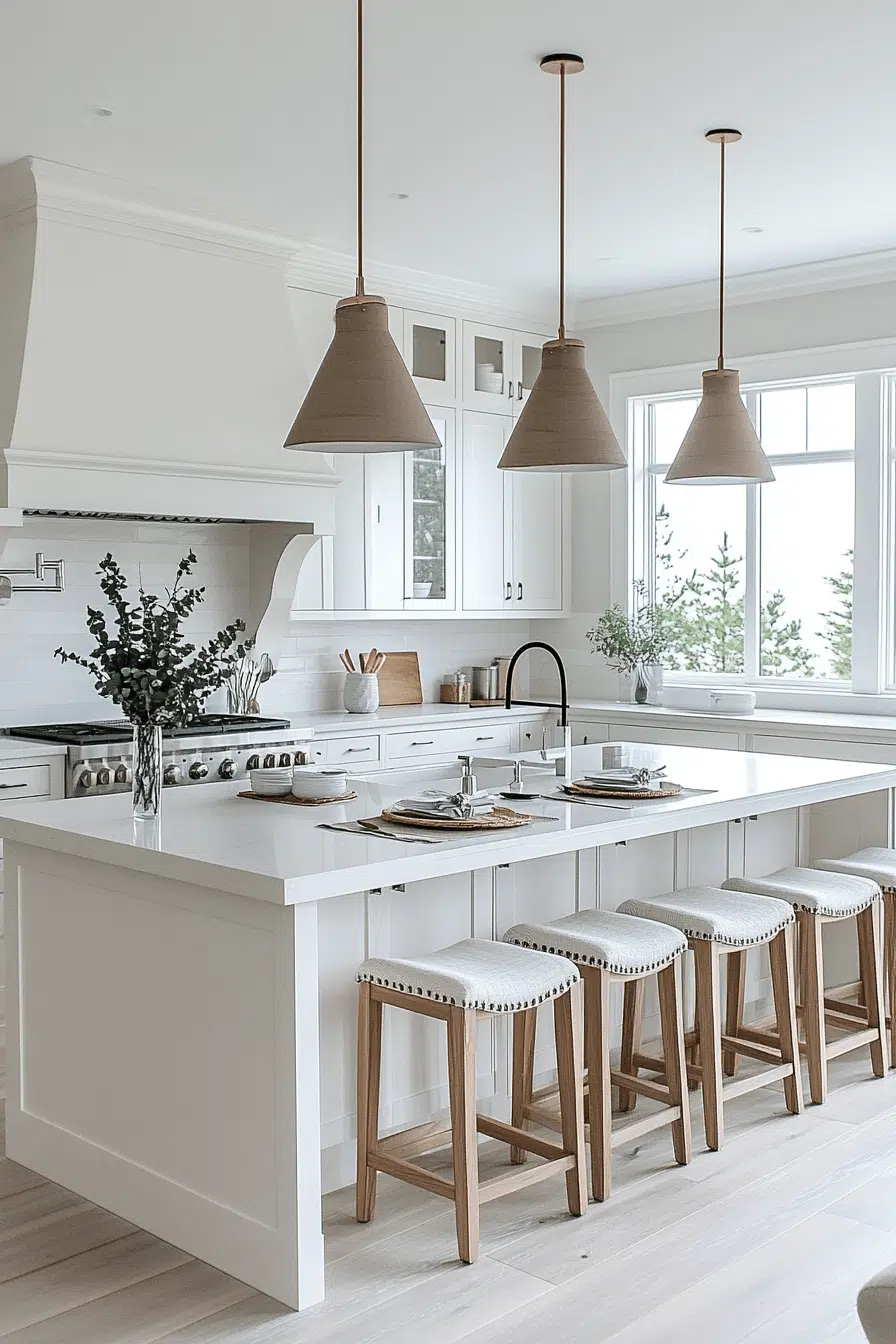 A refined coastal palette transforms a beach house kitchen into a luminous gathering space filled with warmth and light. Soft ivory cabinetry reflects sunshine beautifully, creating an instantly uplifting mood. Subtle wood accents prevent the space from feeling stark or sterile. Expansive windows allow the natural surroundings to shine. The overall atmosphere feels effortless and serene. Click to bring this elevated coastal brightness into your home.