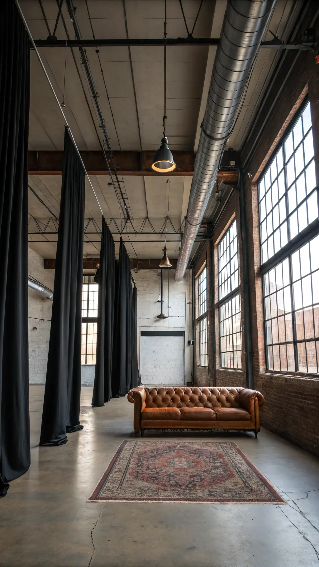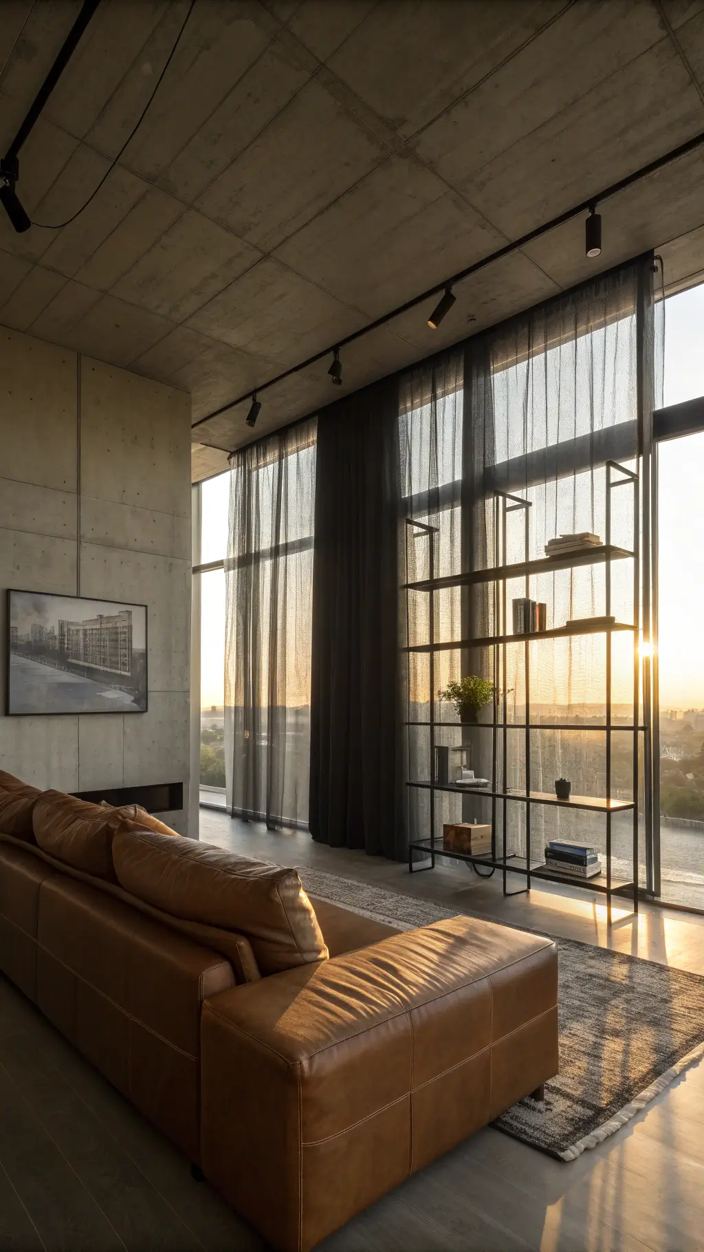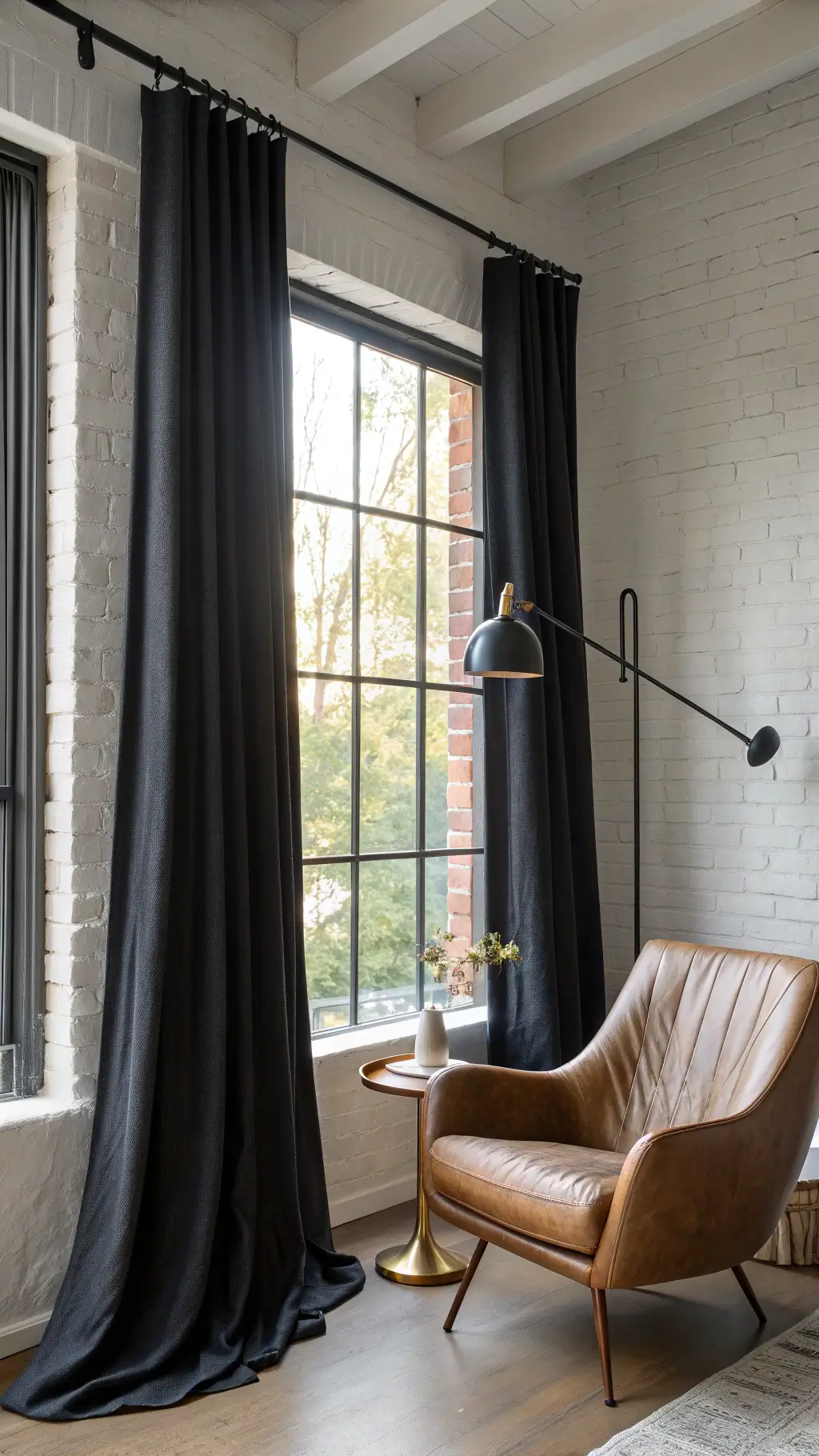 - Urban Cool: Black curtains + light grey walls + leather furniture