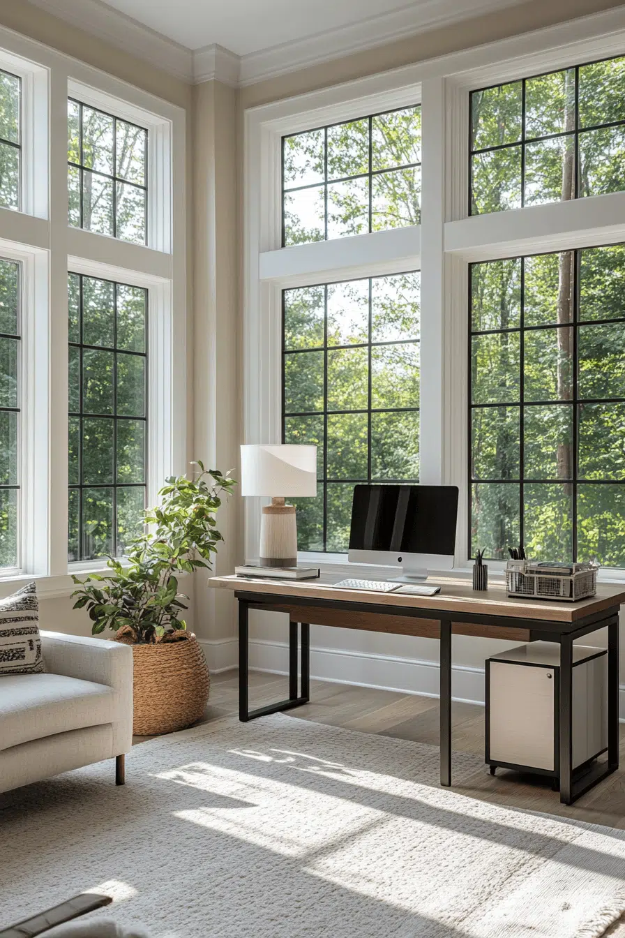 Sunshine takes center stage in this naturally bright retreat. Unobstructed windows and simple layouts maximize every ray. This approach enhances calming office decor by boosting emotional clarity. Pair it with soft neutral tones for balance. The room feels hopeful and steady. Transform your office with the power of daylight today.