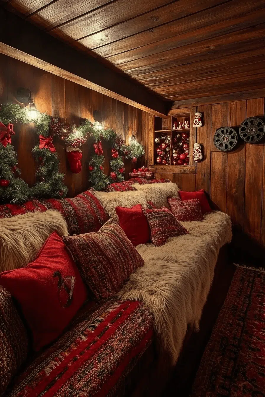 Elevate movie nights by enriching your home theater with christmas decorations rustic for maximum comfort. Faux-fur throws soften seating with warm texture. Burlap banners introduce seasonal charm overhead. Wooden bowls transform simple snacks into festive treats. Wrought-iron lighting builds cozy cinematic glow perfect for winter evenings.