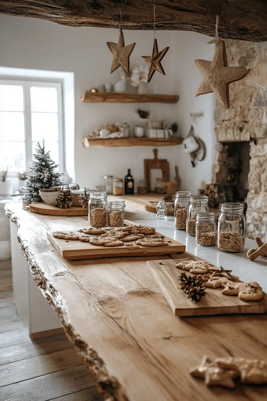 Start fresh with nostalgic holiday comfort by styling your kitchen through christmas decorations rustic filled with warmth and charm. Wooden stars and metal lanterns introduce timeless festive personality. Twine-wrapped cabinets and fragrant cinnamon touches boost seasonal appeal. Farmhouse trays styled with mugs and winter drinks invite meaningful gatherings. Every thoughtful detail energizes your kitchen with uplifting rustic spirit.