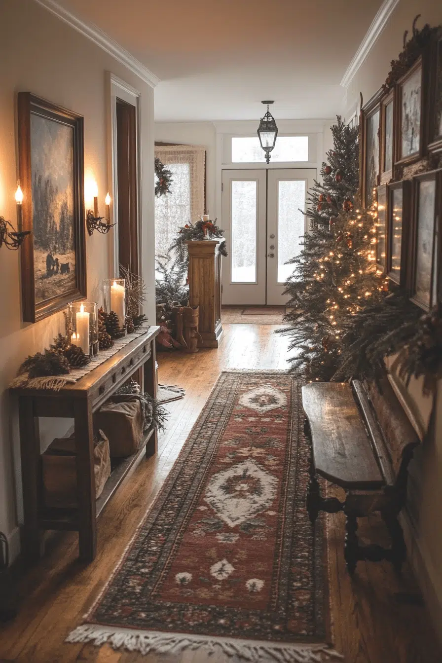 25. Rustic Hallway Seasonal Warmth