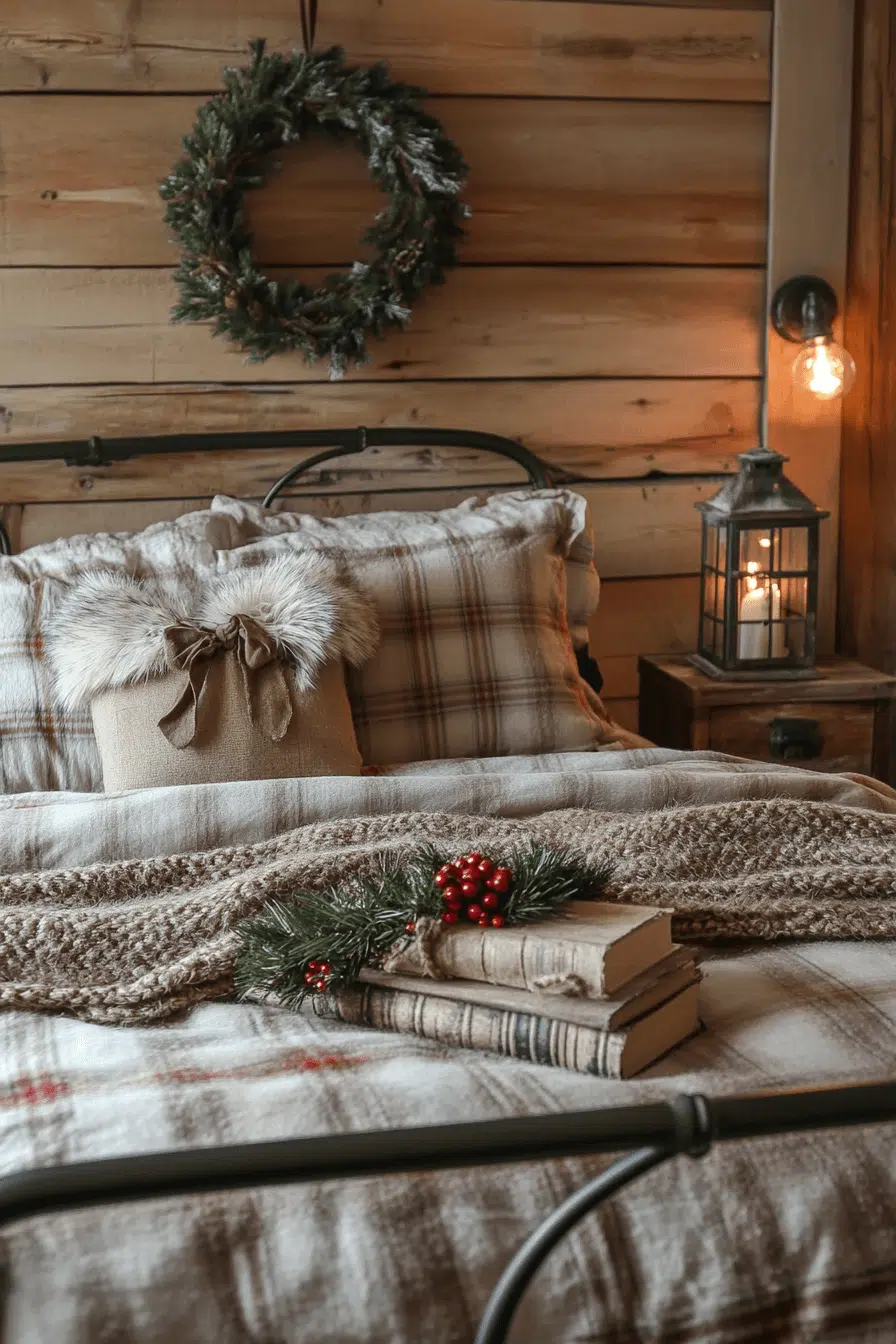 Set a calming seasonal mood by transforming your bedroom with christmas decorations rustic that feel peaceful and inviting. Flannel pillows and faux-fur layers build winter-ready comfort instantly. Wood bead garlands and branch wreaths strengthen natural holiday character. Gentle lantern lighting softens every corner with warm glow. This soothing retreat encourages restful inspiration throughout the season.