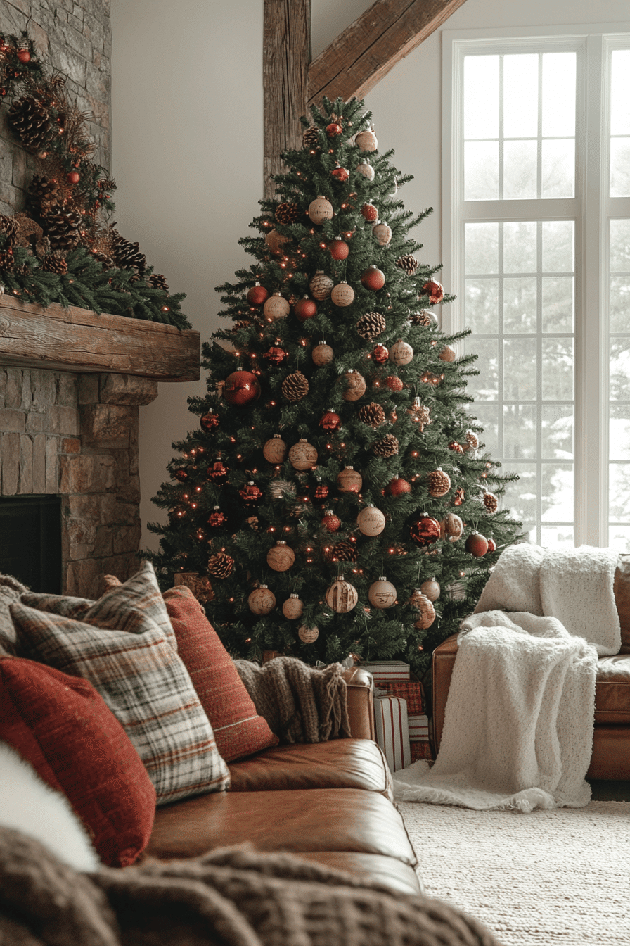 Bring renewed joy into your living space by embracing christmas decorations rustic that transform your living room with comforting seasonal warmth. Natural textures blend beautifully with handcrafted elements for inviting charm. Wooden trees decorated with dried slices and simple ornaments build homespun authenticity. Cozy knits and wool throws elevate cold-weather relaxation. Reclaimed wood accents complete this heartfelt atmosphere with inspiring winter character.