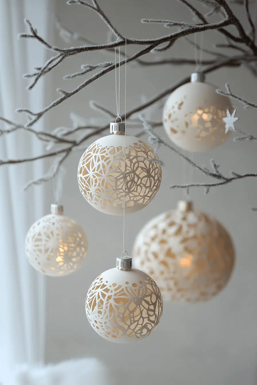 Paper cut-out Christmas ornaments offer weightless beauty with intricate shapes that cast delicate shadows across your branches. Their fine detailing gives your tree a soft artistic flair. They harmonize perfectly with minimalist, Scandinavian, or creative decor themes. These ornaments bring both subtlety and sophistication.