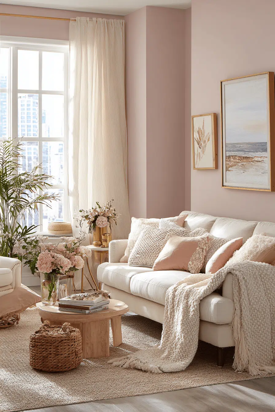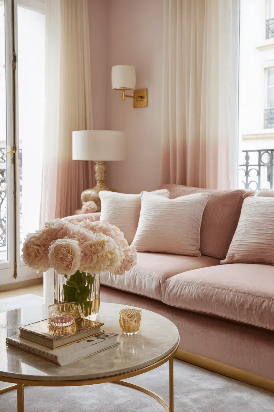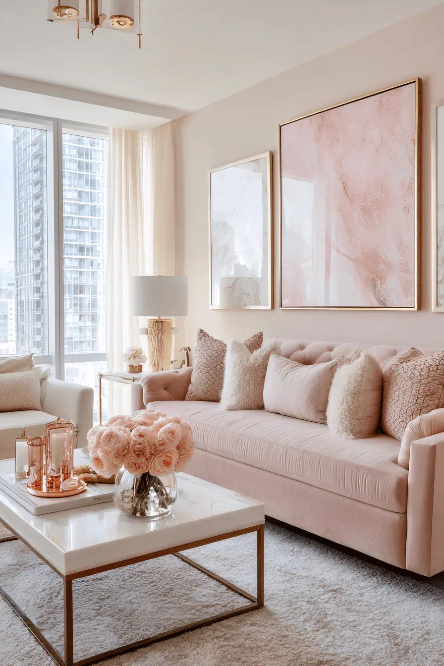 Muted pinks and rose tones bring soft elegance to a feminine apartment without feeling overly bold. These gentle shades blend beautifully with creams, neutrals, and natural wood textures. Layered fabrics add warmth and visual depth while maintaining a cohesive palette. The overall effect is calming, timeless, and easy to style. It’s a versatile look that works in both modern and classic interiors. Every detail feels intentional yet effortless. Discover more feminine apartment ideas and embrace subtle blush sophistication.