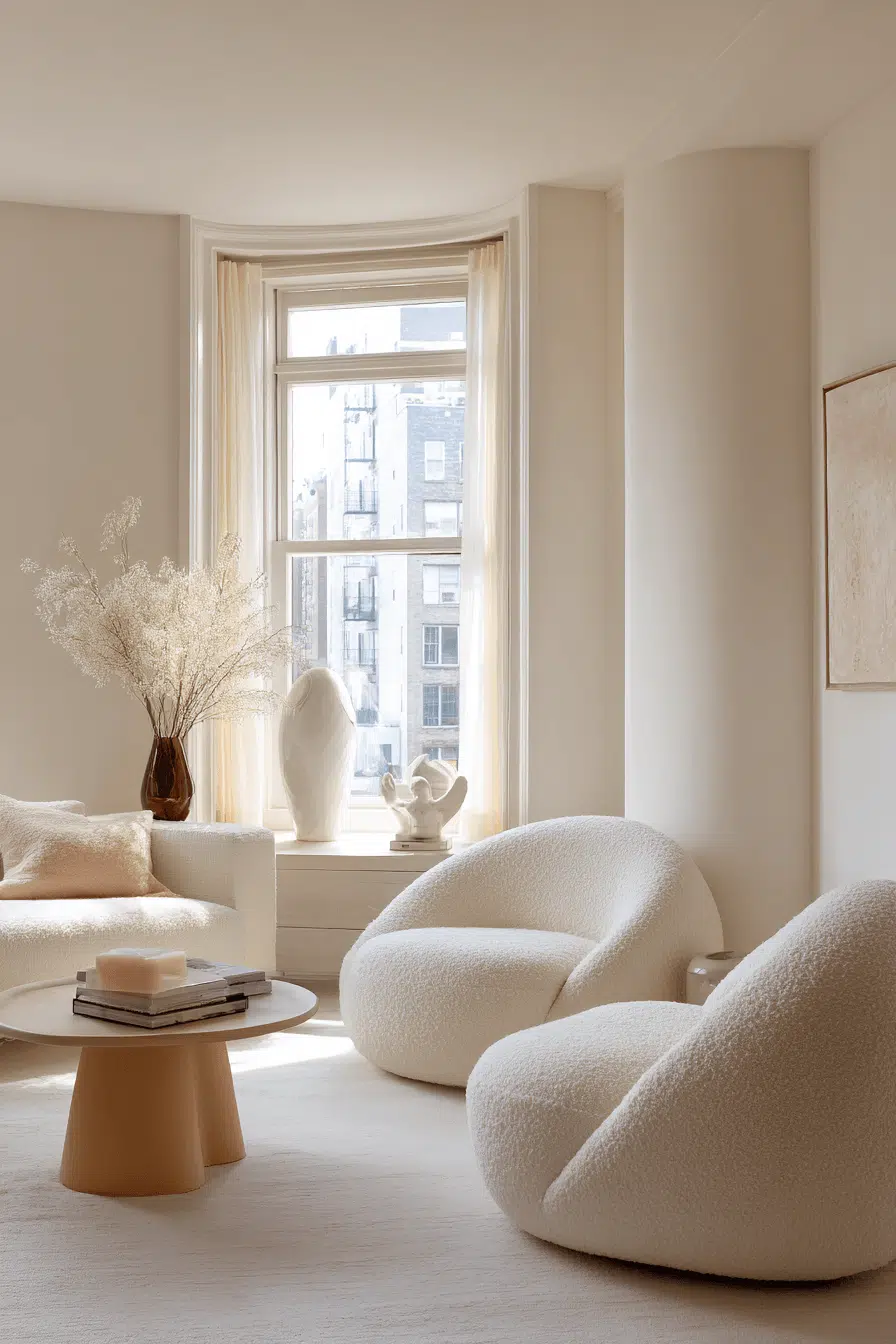 A feminine apartment can feel bold yet approachable when soft creamy tones are paired with sculptural shapes and statement pieces. Gentle hues keep the atmosphere warm and inviting, while geometric lighting and standout decor add personality and edge. The contrast between soft color and strong form creates a visually engaging, modern aesthetic. Minimalist influences keep the space clean while still feeling expressive and full of character. It’s a fresh take on feminine design that feels stylish and confident. Every detail works together to create a balanced, contemporary look. Explore more feminine apartment ideas and elevate your space with modern creativity.