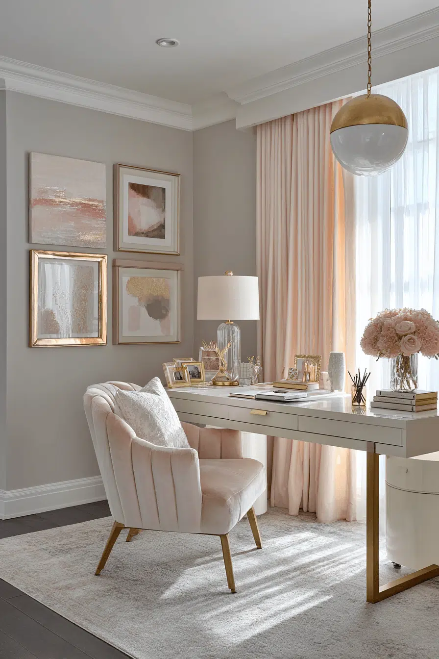 Layered tones and soft gradients can add depth and artistry to a feminine apartment while maintaining a gentle, romantic feel. Blush shades fading into warm neutrals create a smooth, calming transition throughout the space. Subtle metallic accents and textured fabrics introduce elegance without overpowering the design. The look feels modern, expressive, and visually soothing at the same time. It’s a creative way to add dimension while keeping the aesthetic soft and cohesive. Every layer contributes to a dreamy, curated atmosphere. Discover more feminine apartment ideas and elevate your space with flowing color harmony.
