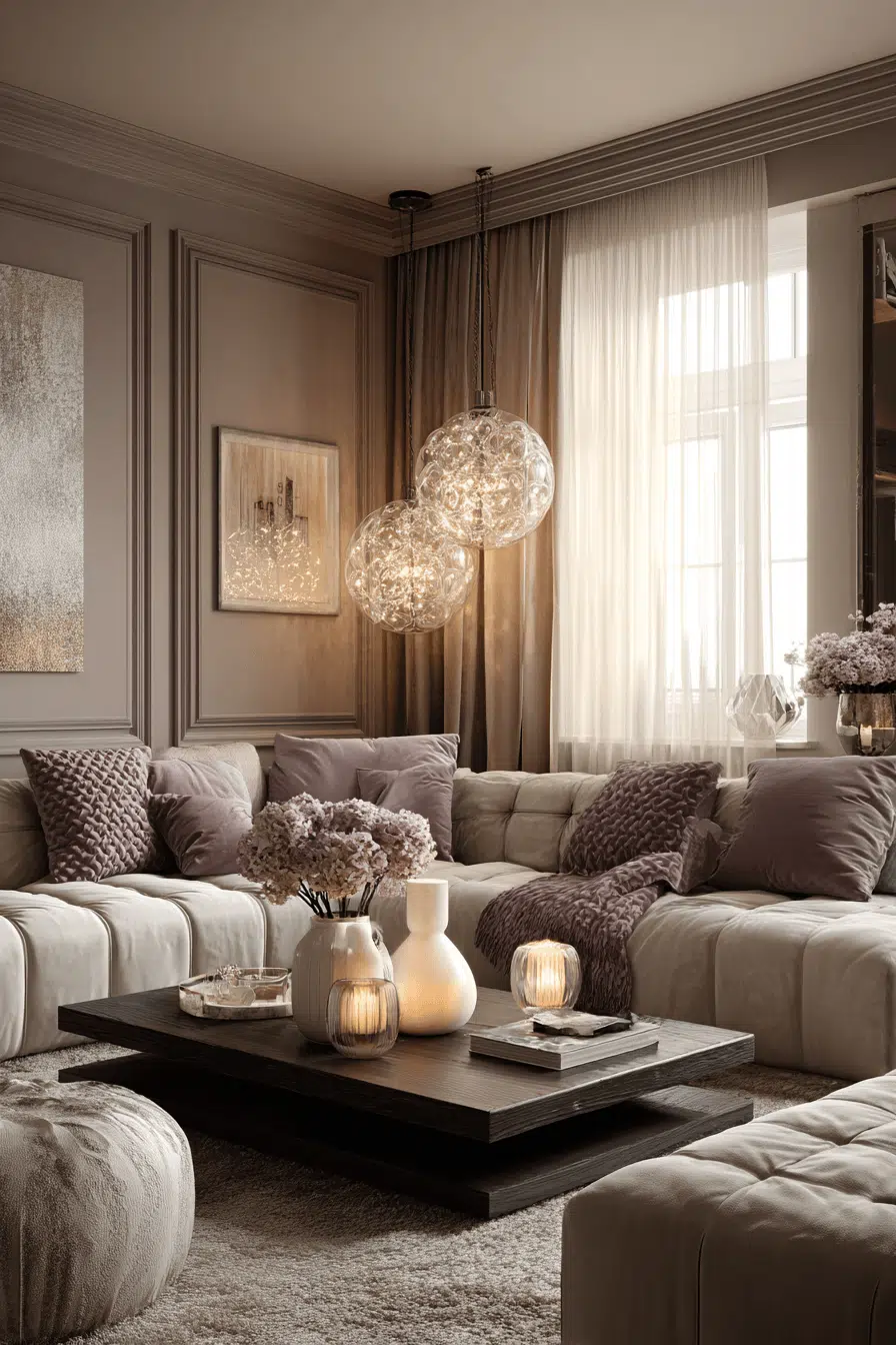 Taupe tones bring a quiet sense of sophistication to a feminine apartment, creating a warm and timeless foundation. When layered with blush, ivory, or soft rose accents, the palette feels rich yet incredibly calming. Cozy textiles like throws and cushions add comfort and depth without disrupting the serene flow. Matte and brushed finishes enhance the softness of the overall design, adding subtle elegance. The result is a space that feels peaceful, polished, and effortlessly refined. It’s the perfect blend of comfort and understated luxury. Discover more feminine apartment ideas and design a home that feels both elegant and relaxing.